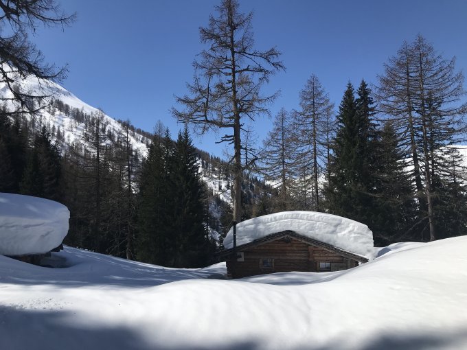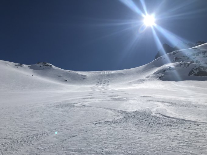 Sehr viel Schnee. Gute Spur. Abfahrt nach Oberwald top.