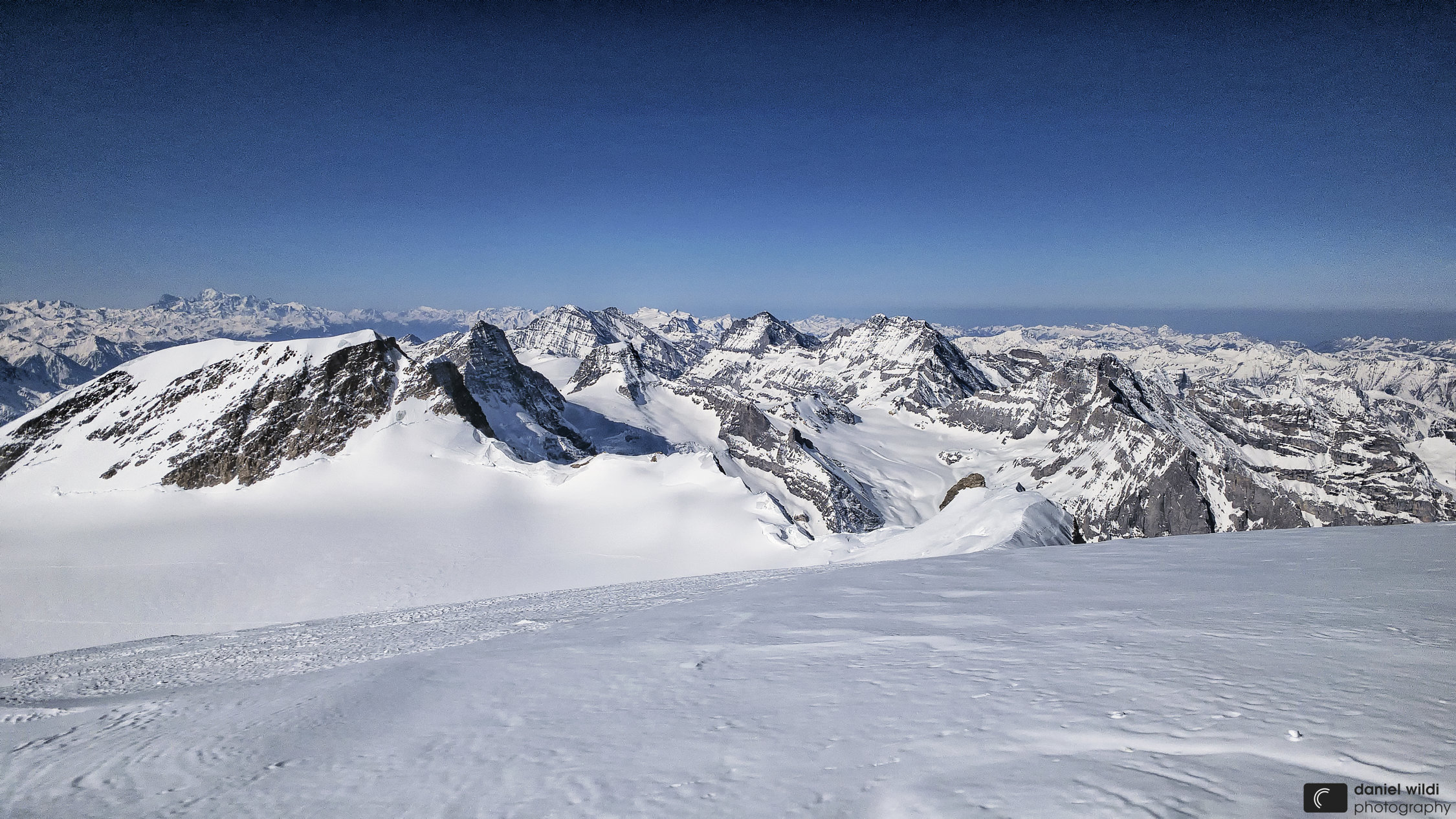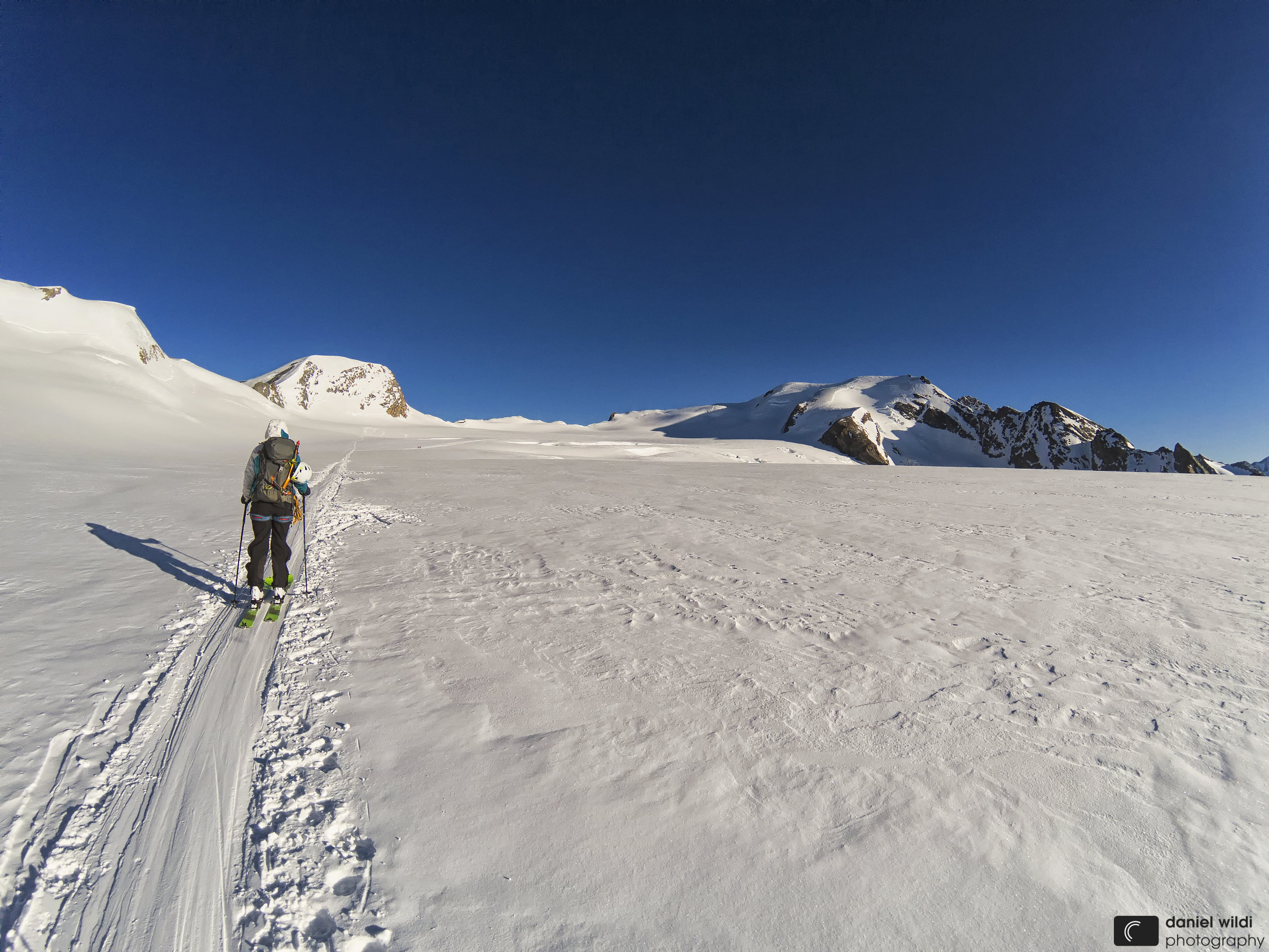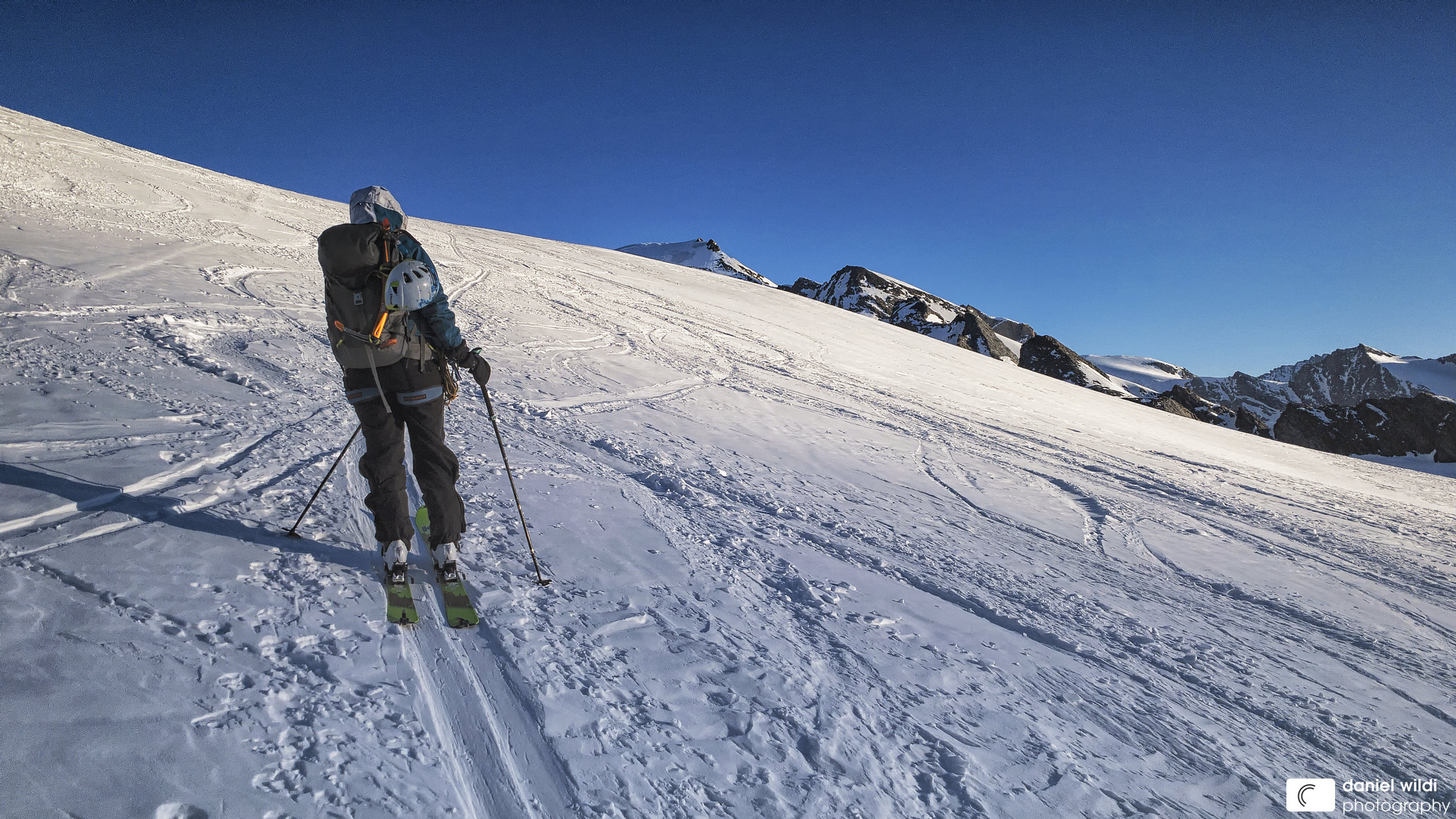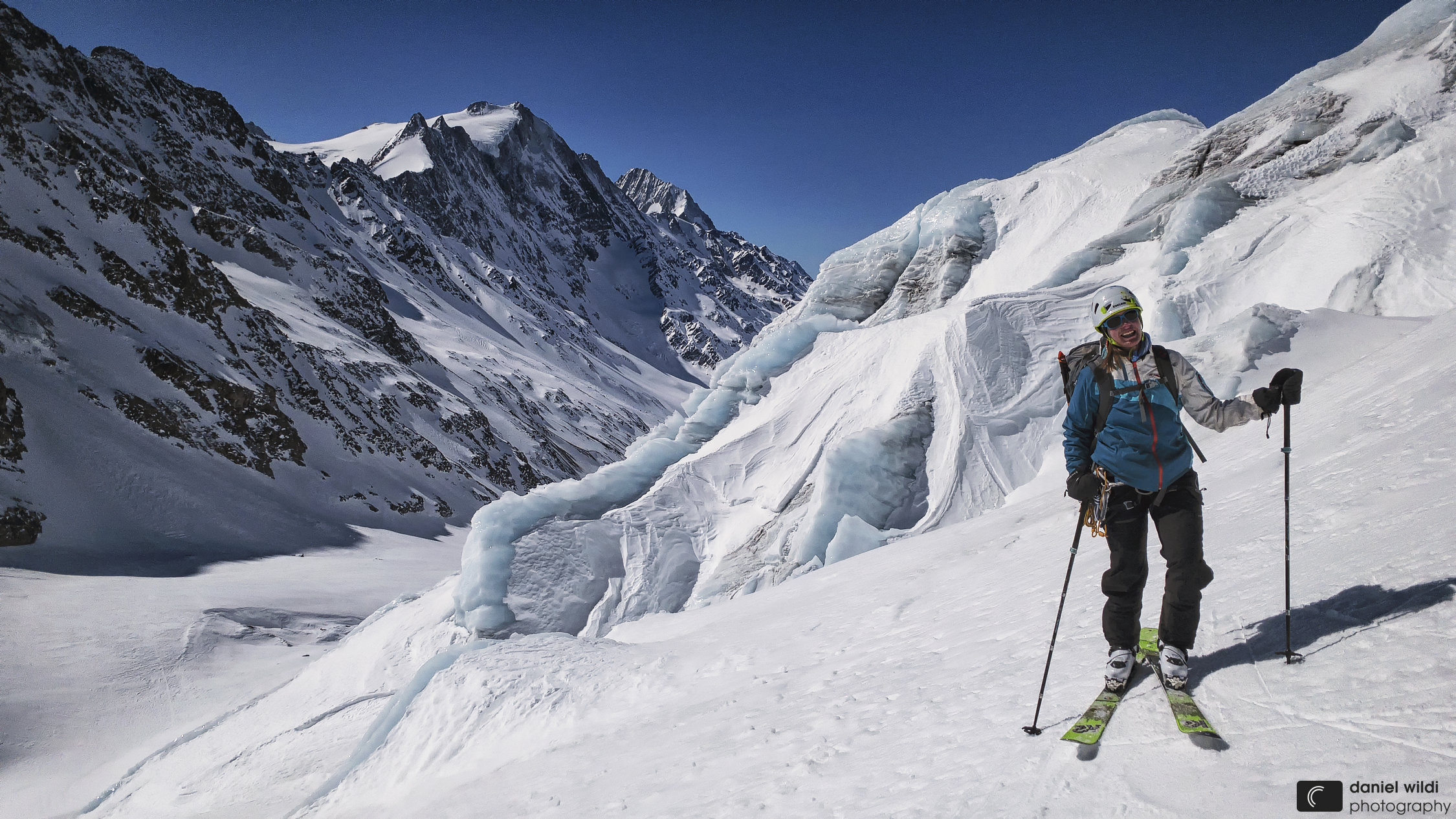 Am nächsten Tag über den Äbeni Flue Firn auf die Äbeni Flue (3'962 m.ü.M.) und Abfahrt via Lötschenlücke über den Langgletscher nach Blatten in Lötschental.