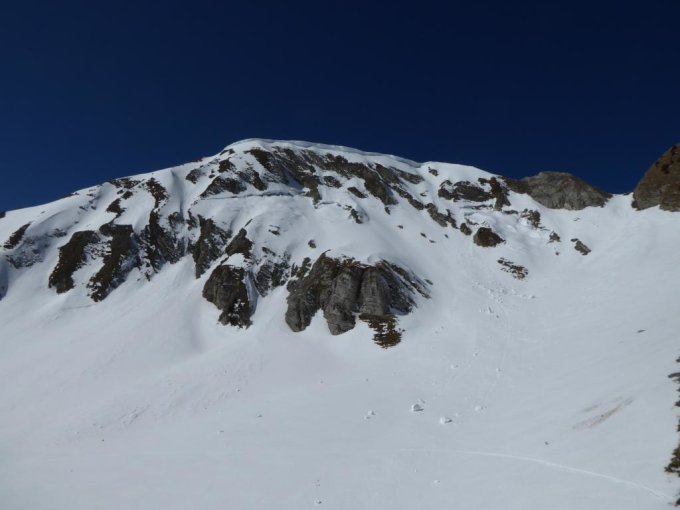 Wir sind vom Stand 1883 m direkt das Couloir nach W hoch richtung Schibe. Das spart etwas Höhenmeter, ist dafür aber anspruchsvoller. Der Grat vom Couloir-Ende zum Schibe-Gipfel hat es noch in sich! Steigeisen und Pickel sind notwendig, ausgesetzt und ca. T4, mixed. Der Rest der Tour "klassisch".