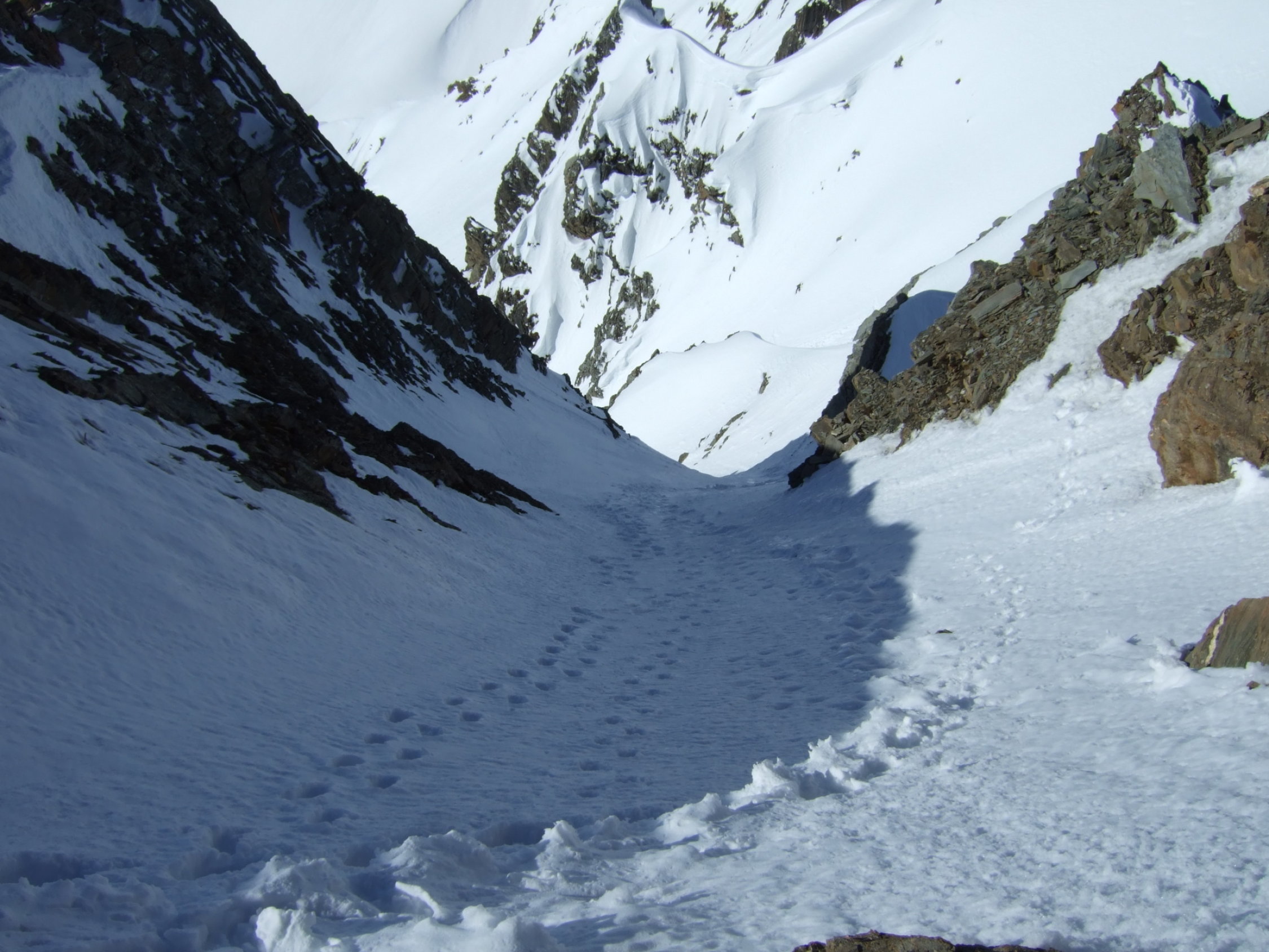 Abfahrt vom Rinneneinstieg / Skidepot um 10.30Uhr passend bis runter nach Arnoz.