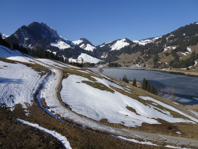 Abfahrt; (SO-Hang) wunderbarer nicht tiefer Sulz, (NW-Hang)zuerst etwas Pulver, dann ganz leicht angesulzt bis zu den Pisten(Abfahrtsgenuss pur), anschliessend über immer noch gut präparierte Pisten nach Schwarzsee