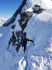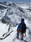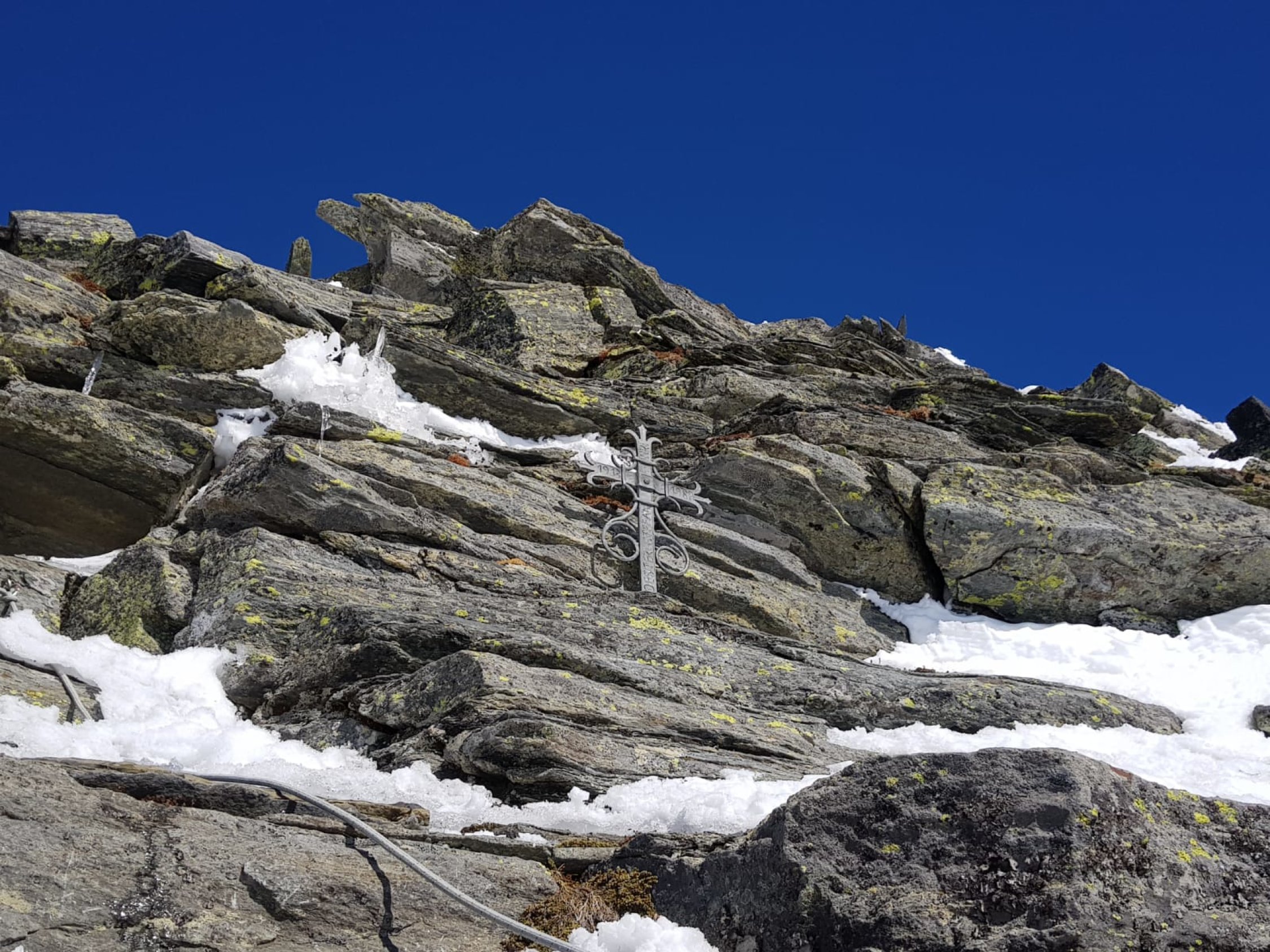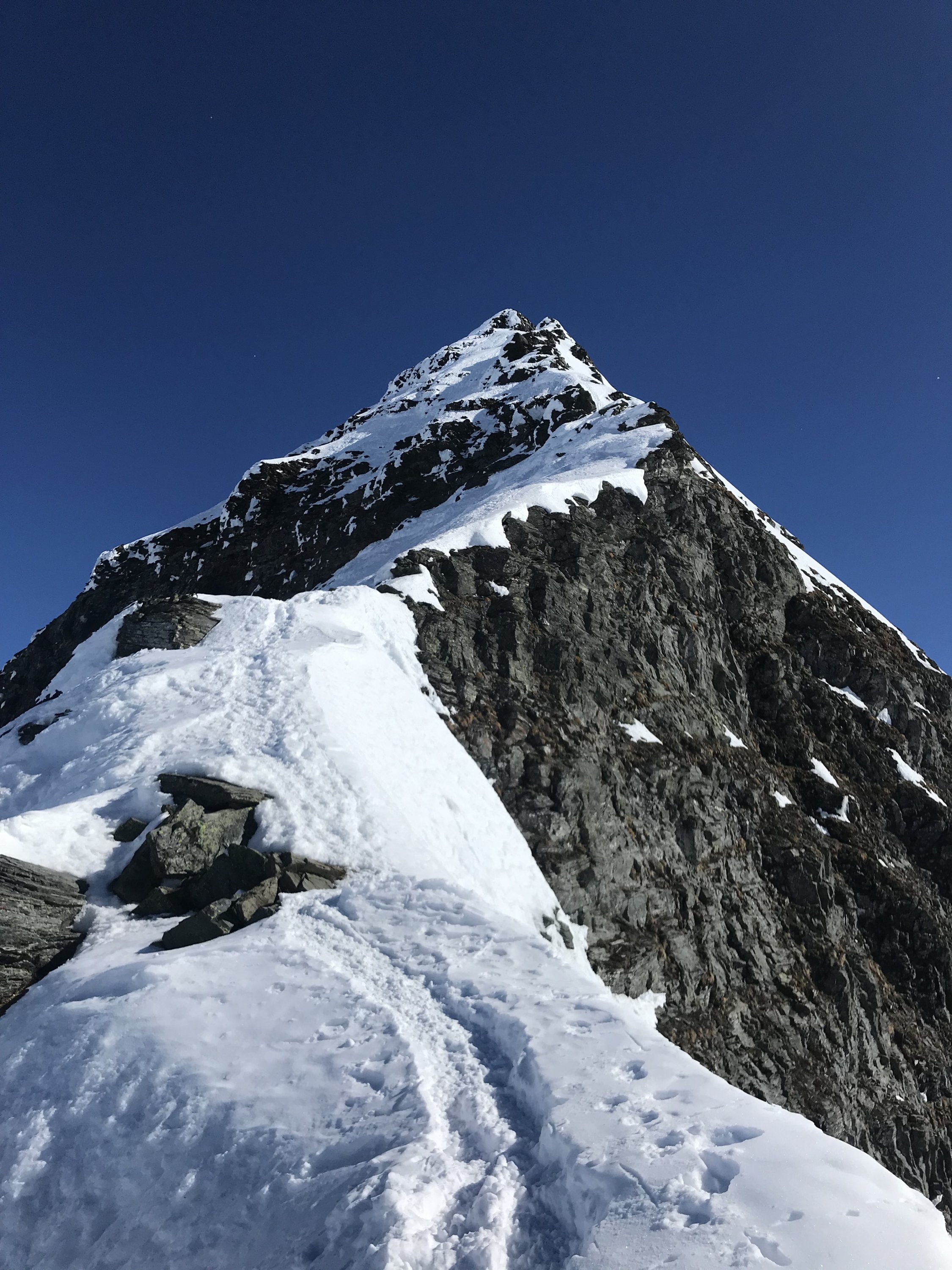 Der Gipfelgrat ist gut zu besteigen. Der Schnee trägt, es gibt Trittstufen, das Fixseil unterhalb des Gipfels ist freigelegt. Steigeisen sind allerdings höchst empfehlenswert. (Ohne sie war heute keiner auf dem Grat bis auf ein Paar, das deswegen umkehren musste). Gipfel nach 5 Stunden erreicht.