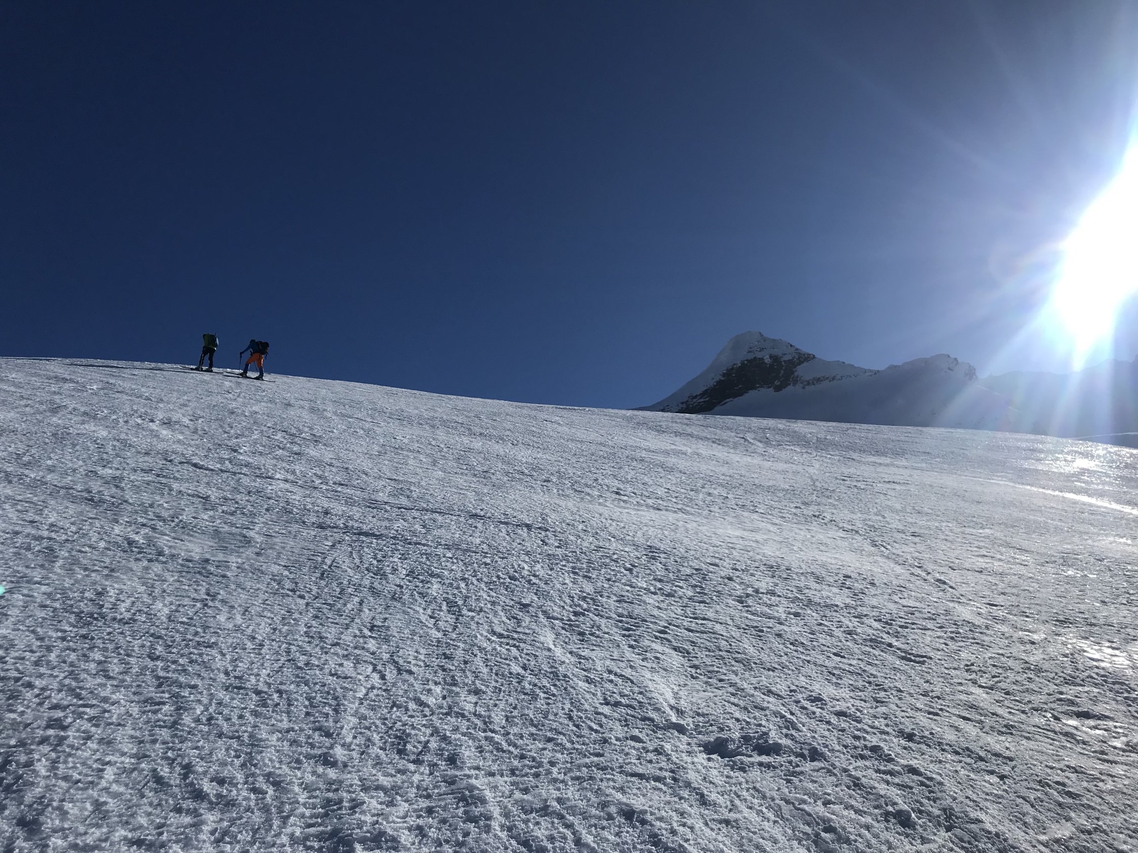 Die Schneeverhältnisse am Bortelhorn sind - verglichen mit vielen anderen Gipfeln im Schweizer Alpenbogen - ausgezeichnet.