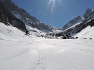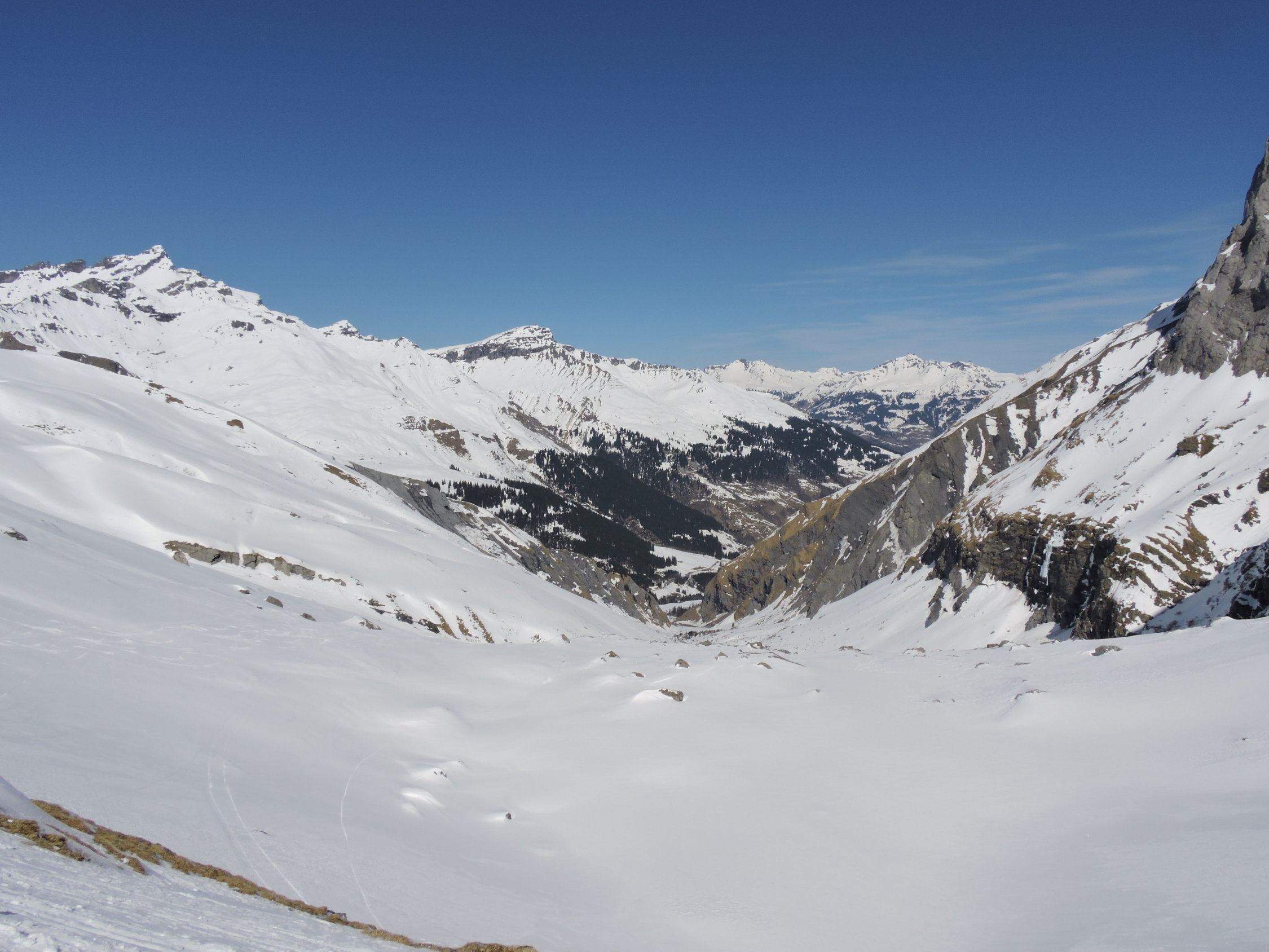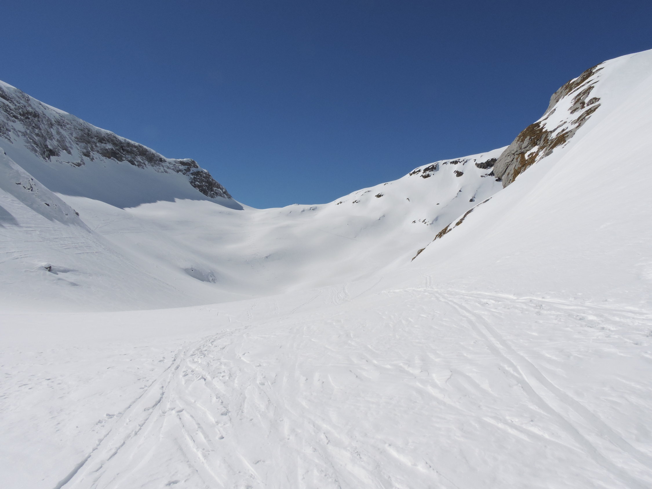 Sehr gute Touren Verhältnisse ab dem Parkplatz! Es wehte eine kühle Bise ! Gipfelhang Pulver zum Teil mit Winddeckel Übergang zu Firn/Sulzschnee jenach Sonneneinstrahlung aber trozdem sehr gut zu fahren. Chären zum Häxenseeli bis Wichlen Top Sulzschnee in der Abfahrt