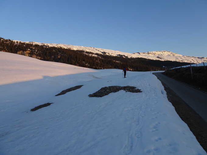 Wetter: angenehmer Tourentag, Sonne, nur einzelne Schleierwolken im Verlauf des Vormittags, Temperatur am Start -1Grad, schwachwindig bzw. windstill