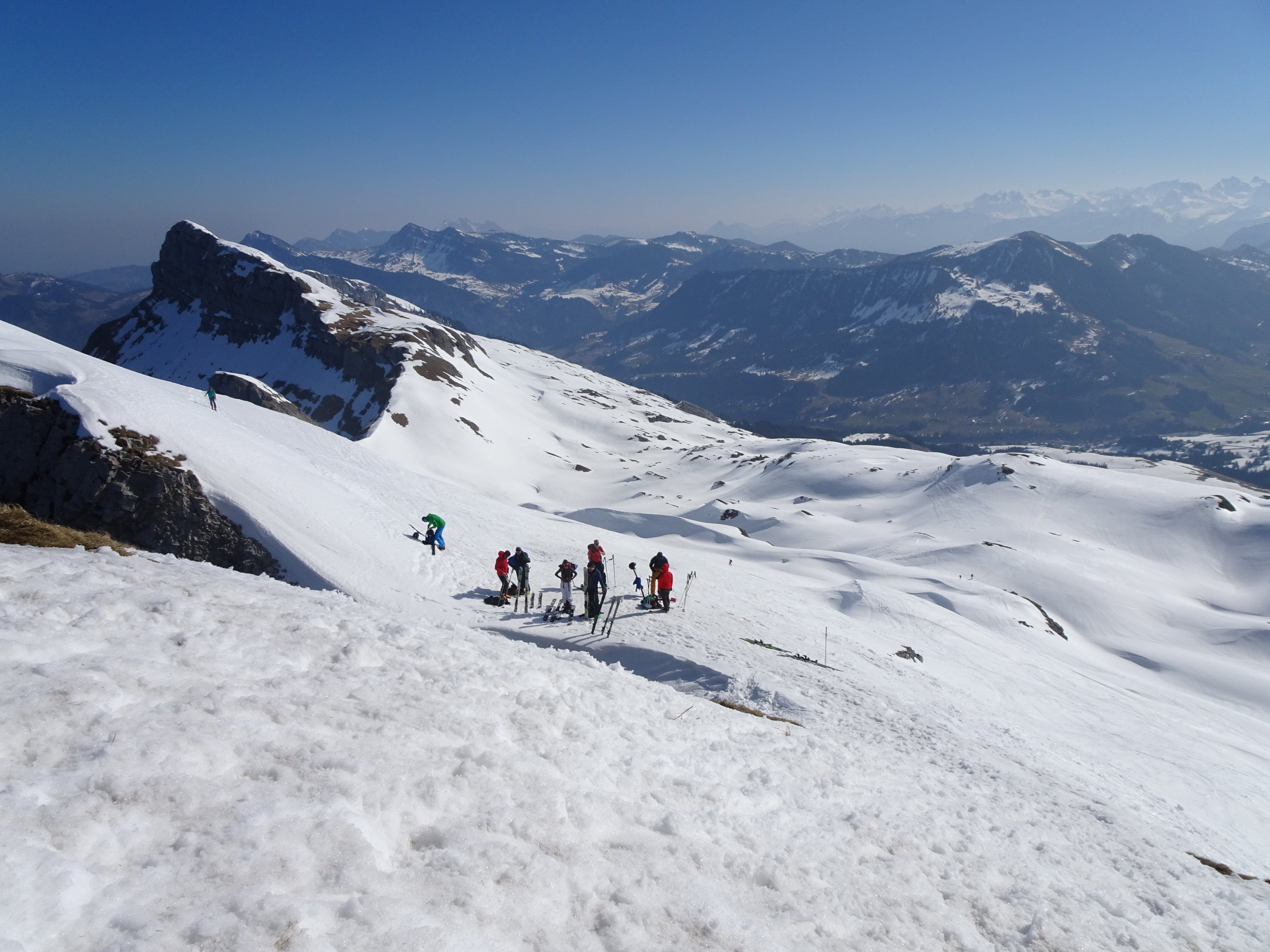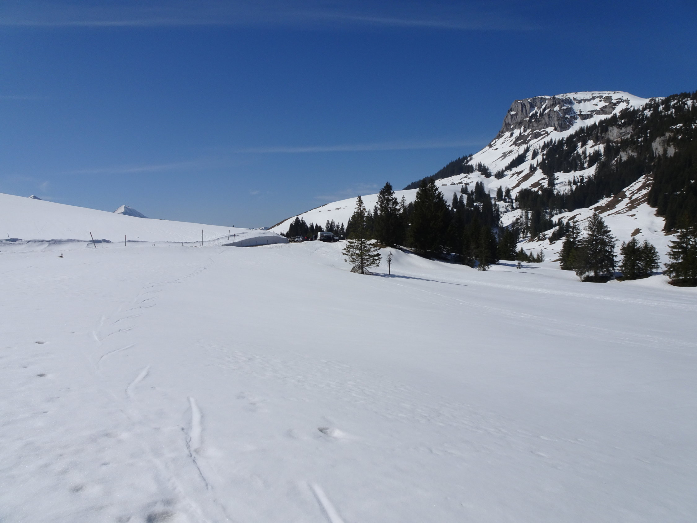 Schnee: auf dieser Route noch überall sehr gut eingeschneit(nur ab Hirsegg bzw. über die Stächelegg langsam knapp), Dolinenlöcher sind ersichtlich oder gut eingeschneit, im Aufstieg hart(keine Harscheisen erforderlich), in der Abfahrt(10.45Uhr) perfekt aufgesulzt