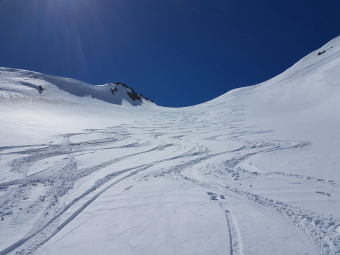 Traumtag mit Sulzabfahrt (Start ca 13h00) von oben bis unten. Eine kleine Passage beim Honegghorn war sogar Pulver.
