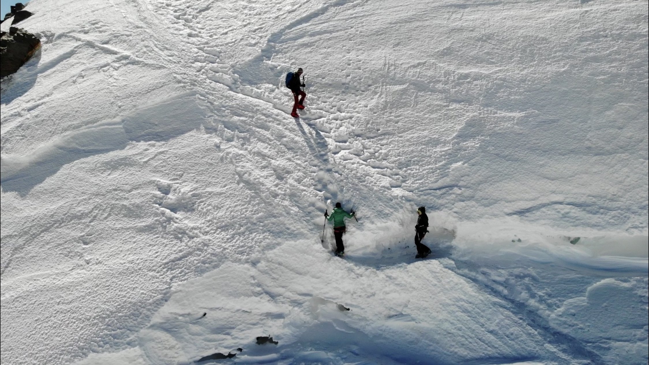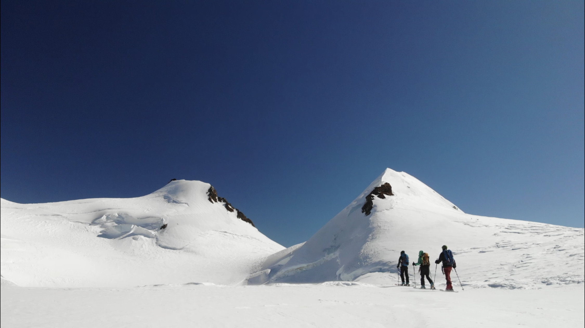 Ab der Gnifetti Hütte ist eine Spur im Sinne einer Autobahn vorhanden. Trotzdem ist Vorsicht zu geniessen! Die grossen Spalten sind zwar zugeschneit, jedoch reisen die Schneeverwehungen am Rand bereits ein. Auf der ganzen Tour ist der Schnee hart Windgepresst.