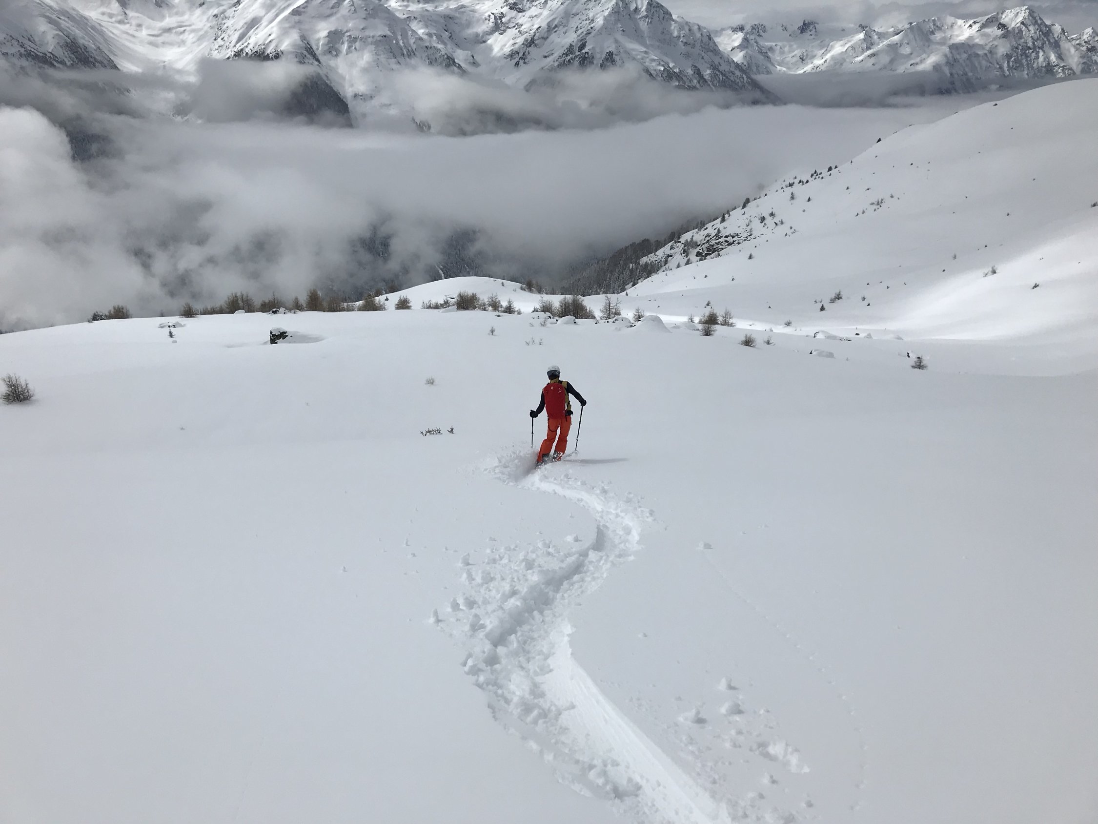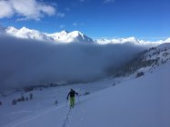 Aufstieg bis zum Skitourengipfel. Angenehme Steigung/Gefälle der Tour für die Verhältnisse. Im Gebiet keine Lawinen gesehen. Der Schnee wurde zur Tagesmitte leider schon schwer. Leider ein paar Steinkontakte im Wald vor dem Parkplatz bei der Abfahrt, sonst scheint es noch eine Unterlage zu haben.