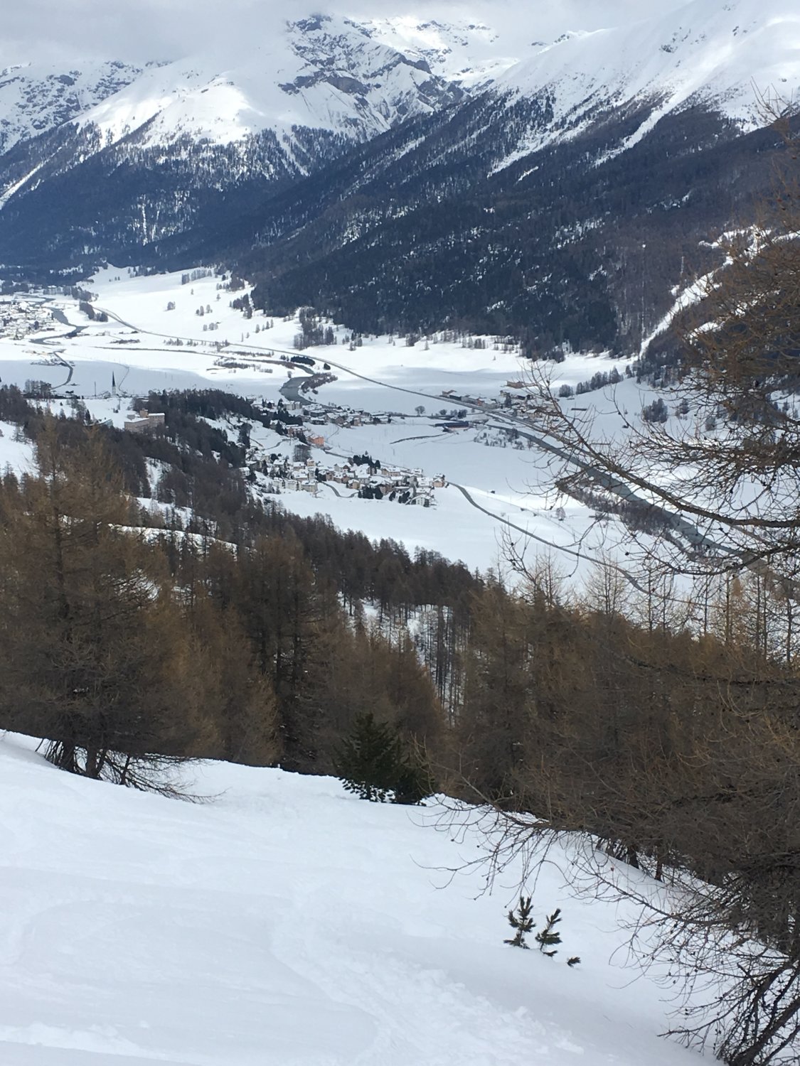 Start um 8 Uhr Bahnhof Madulain, 0 Grad, windstill. Aufstieg bis P. 2528 auf guter Spur vom Freitag, im Steilstück im Wald Spur durch Abfahrtsspuren nicht mehr vorhanden. Ab P. 2528 flach zum Gipfelaufbau und mit Skis dem Grat entlang ohne Schwierigkeiten zum Gipfel oberhalb der Fuorcla Gualdauna 2486 m. Abfahrt in echt schlechtem nassen, feuchtem Schnee, teilweise Bruchharsch und für Kurven braucht es viel Kraft und auch Können. Ich bin bei diesen Verhältnissen etwas überfordert und habe viele Traversen mit Spitzkehren gemacht. Habe in den letzten Jahren nie mehr so schlechte Verhältnisse angetroffen, der üppige Schneefall bis ein Meter vom Donnerstag war viel zu nass.