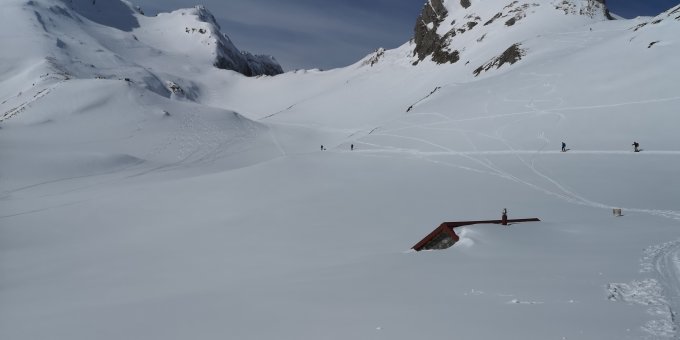 Start 7:15 ab Parkplatz. Aufstieg gemäss Route, Abfahrt nach Grat mit Fellen machbar, aber teilweise schon sehr abgefahren und wenig Schnee. Im obersten Bereich konnte man am Morgen noch Pulverschnee finden und erste Spuren legen. Ich habe zur Glannahütte traversiert und bin von dort abgefahren. Der obere Teil war noch super zu fahren, unten dann der Schnee sehr nass und schwer.