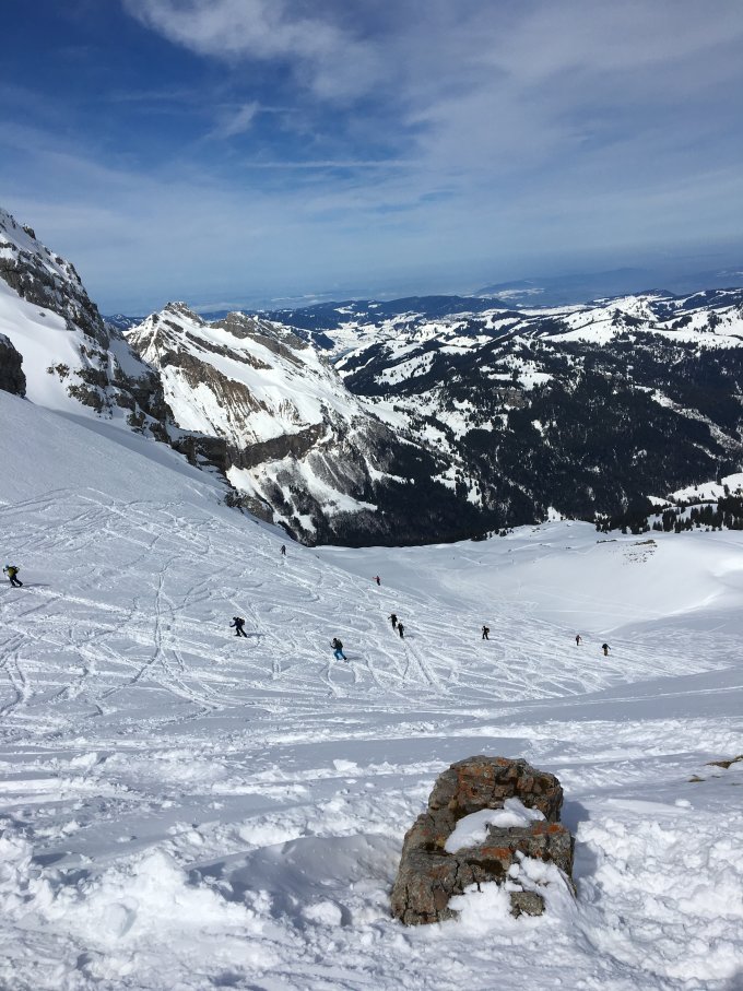 Aufstieg über Fälleggen mit geschlossener Schneedecke vom Parkplatz weg. Harte Aufstiegsspur im mittleren Bereich manchmal eisige Stellen.Bis auf wenige kurze Stellen hatte es ein Harschdeckel von unten weg bis fast ganz nach oben. Die Abfahrt wahr wider Erwartung recht gut. Nordseitige Hanglage war das Zauberwort. Bis ca 2000 hm Presspulver dann ein bischen Deckel ,ging aber recht gut (Splitboard), bis Rinderweid von dort weg Nassschnee.
