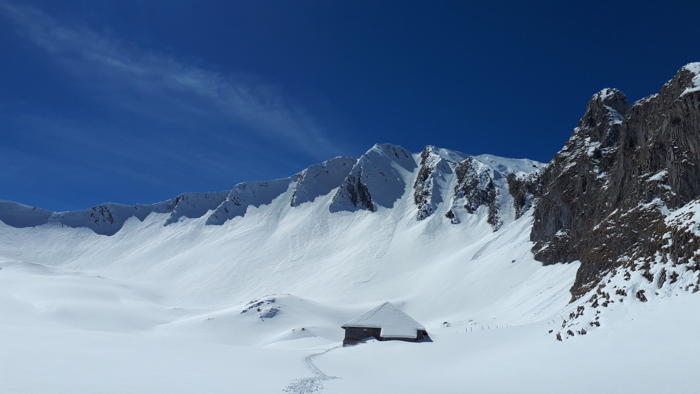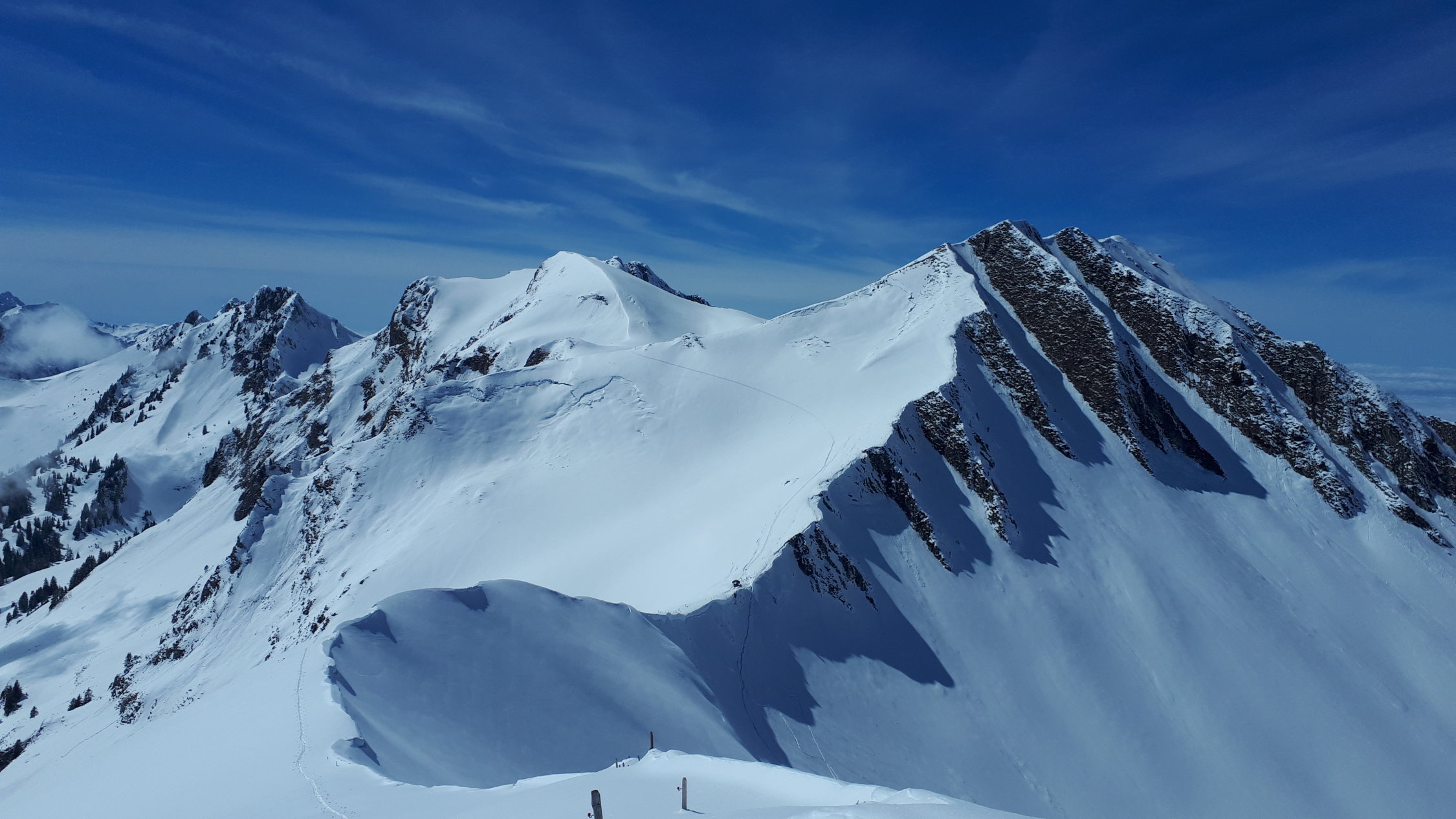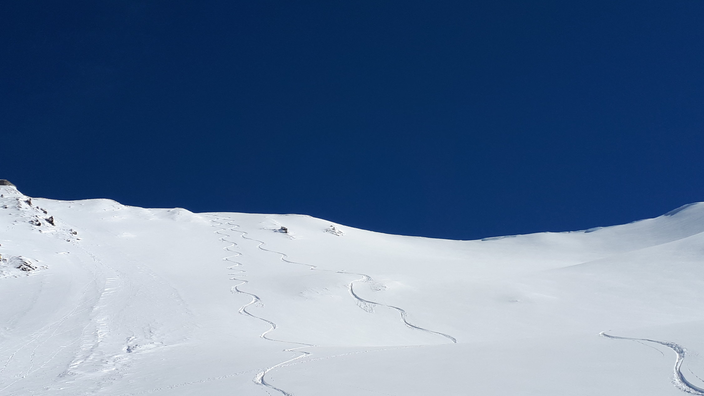 Superbe conditions (en 20 et 40 de pow) sur tt le circuit: schibespitz -> couloir est (le tout 1er) -> schibespitz -> face N -> Bierhubel.. demain croute sur toutes les orientations qui ont pris le soleil..