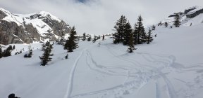 Start der Tour am 8.30 Uhr bei der Melchseefrutt, das Wetter recht gut, durch die Piste in Richtung Tannalp, ein kurzer Stück war gespurt durch Schneeschuhläufern vom Vortag, dann leichter Deckel mit viel einsinken beim Spuren bis Gipfel, beim Gipfelhang kam dann zum Glück Verstärkung von hinten, Abfahrt auf der Nordseite über Heufrutt nach Stöckalp, im oberen Abschnitt waren die Verhältnisse noch sehr gut, viel Pulverschnee, unten ein sehr schwerer Pappschnee, es hatte unten noch viel Schnee ohne Unterlage bis Stöckalp.