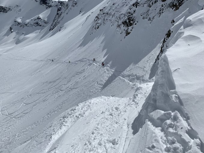 Die ca. 40cm Neuschnee der letzten Tage waren entspechend gesetzt und an der Oberfläche windbearbeitet aber schlussendlich gut fahrbar.