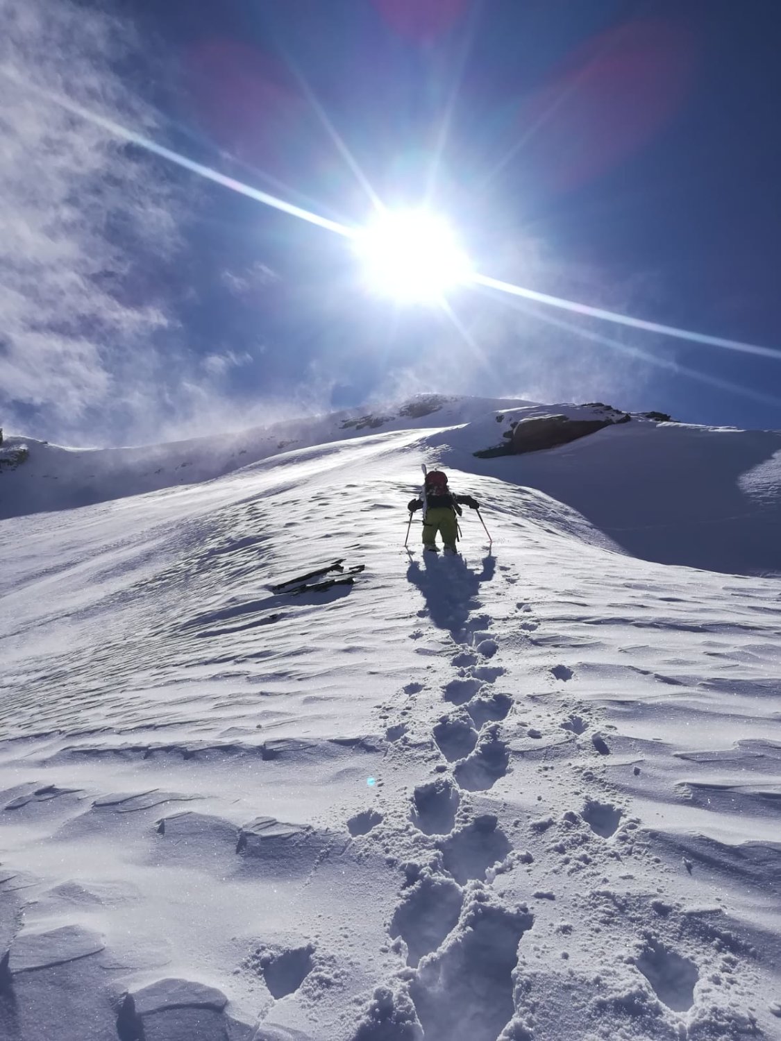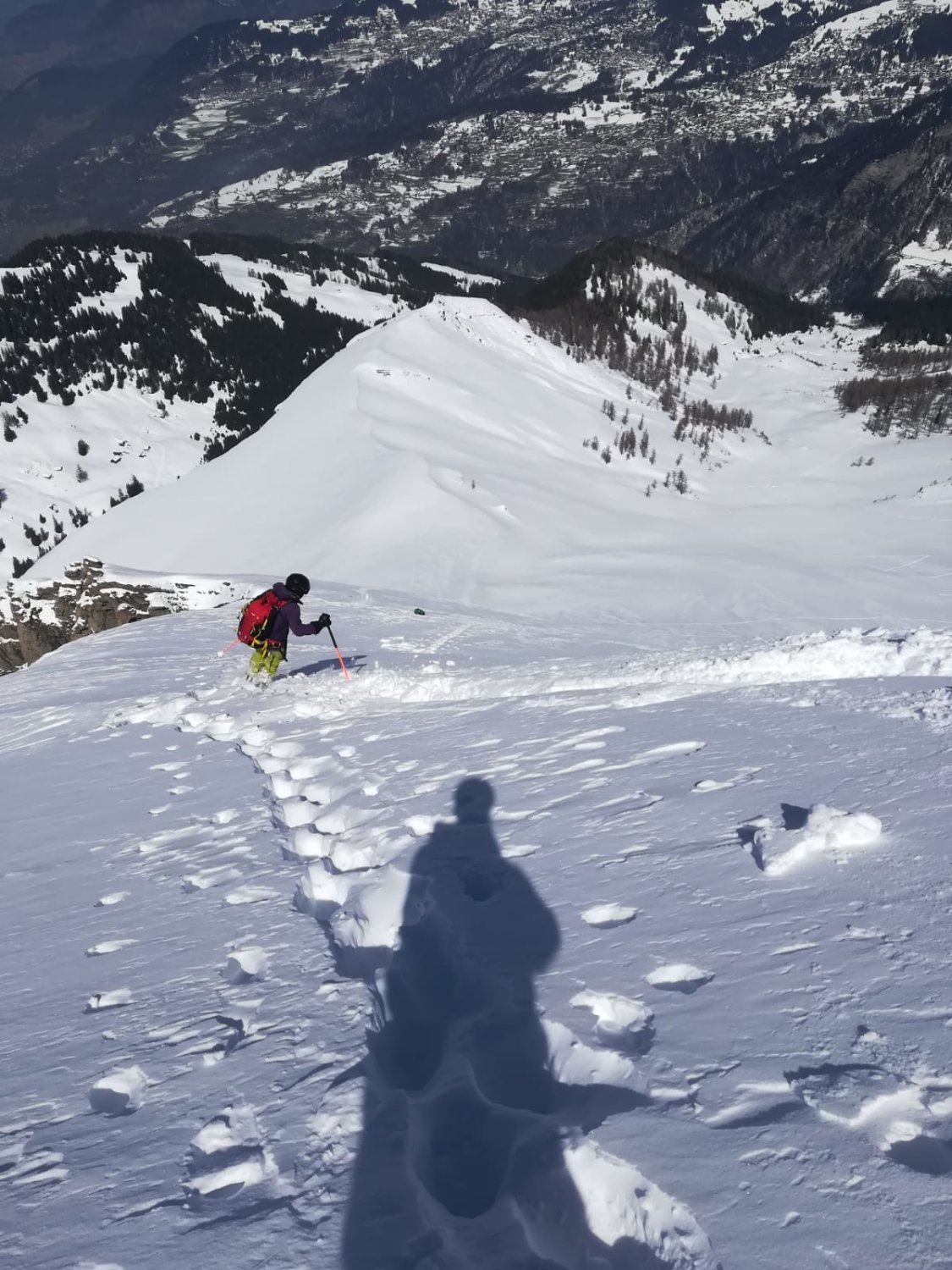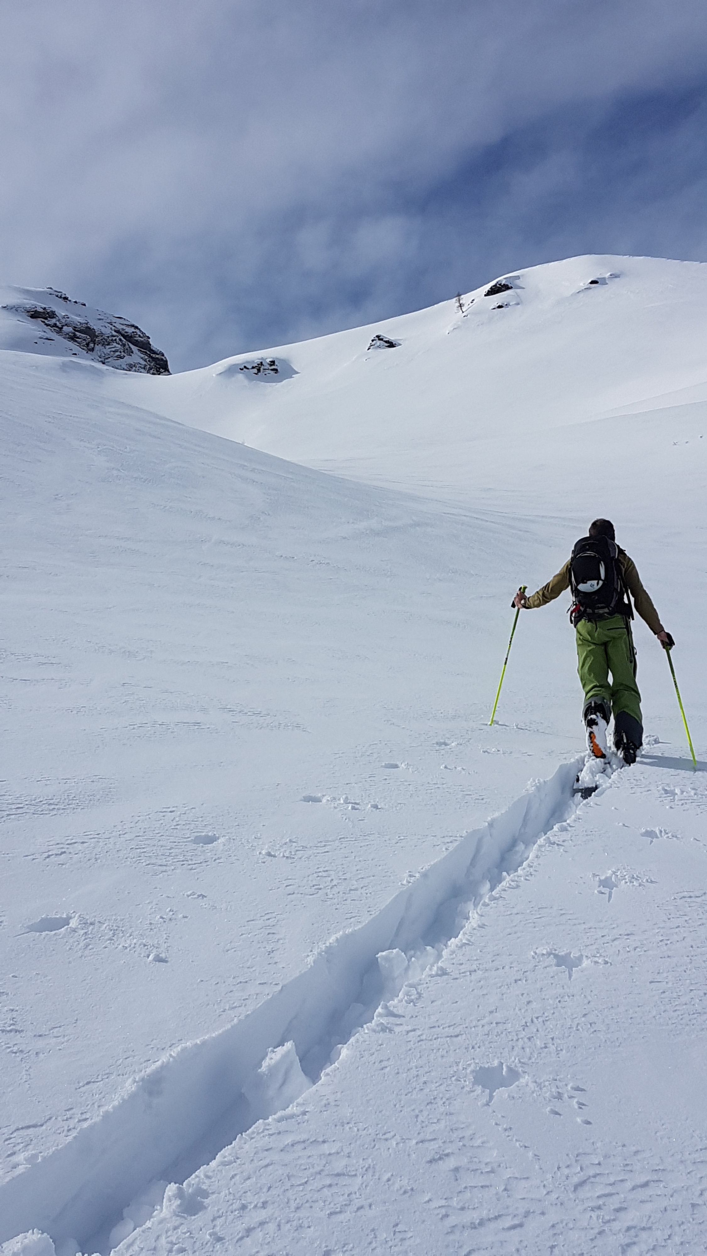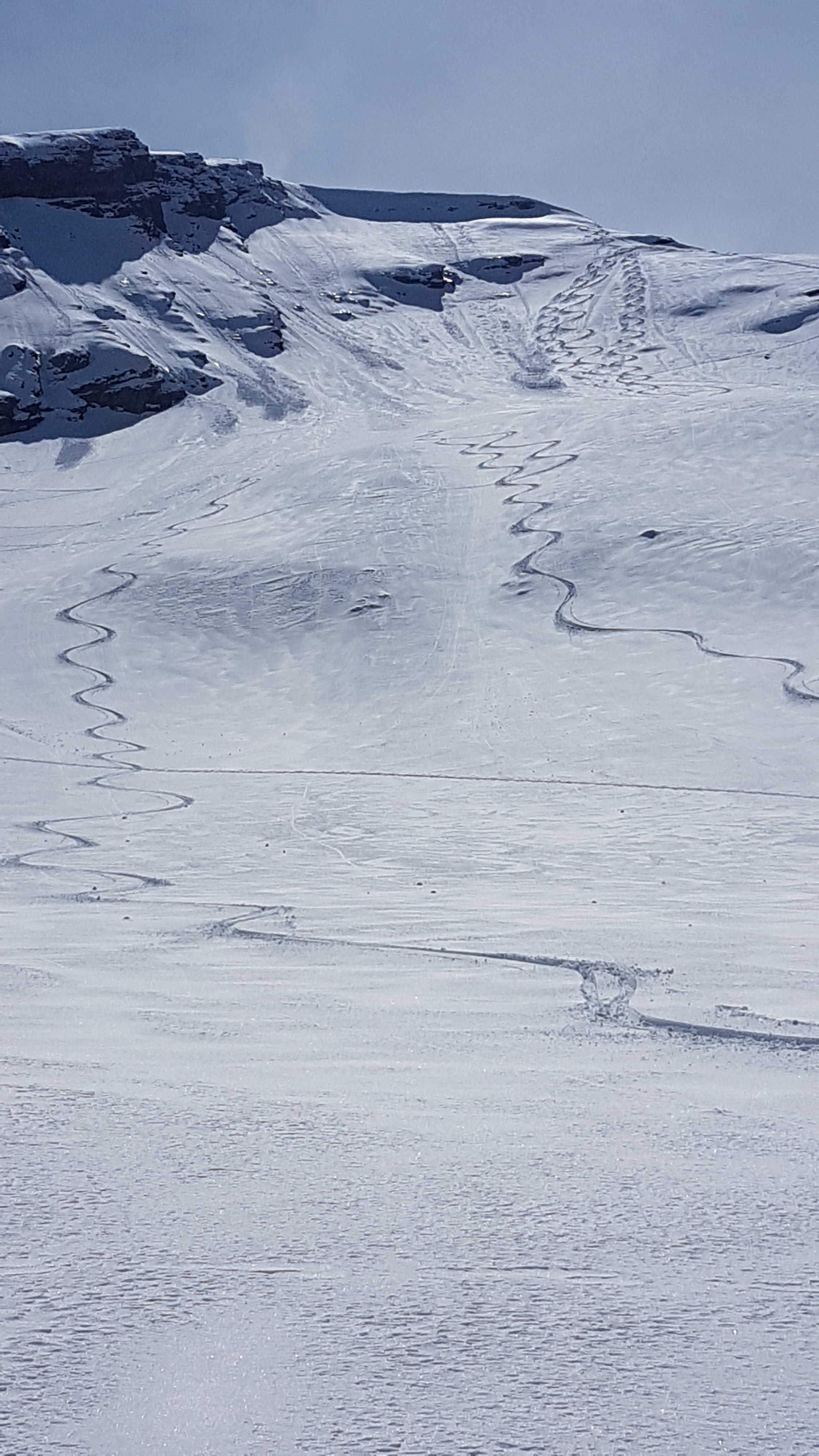 mit ädu2 und im gipfelhang noch mit christoph jaquerod(c2c steillegende)der vom Nebental dazukam(merci für spur oben raus).es war wieder mal der oberhammer im puder wie im tiefen winter-ds karma isch wieder mit üs gsi.merci äd...
