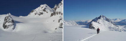 Abfahrt: Es gibt mehrere Abfahrtsrouten (südwärts in's Russedalen, nordostwärts über den Streupbreen nach Strupen), meist wähl man die Abfahrt über die Normalroute nach Koppangen zurück. Es gibt speziell auf der Südseite des Tales einige weitere lohnende Gipfe und Hänge, welche man einzeln oder als Ergänzung zum Tafeltinden besteigen und abfahren kann.