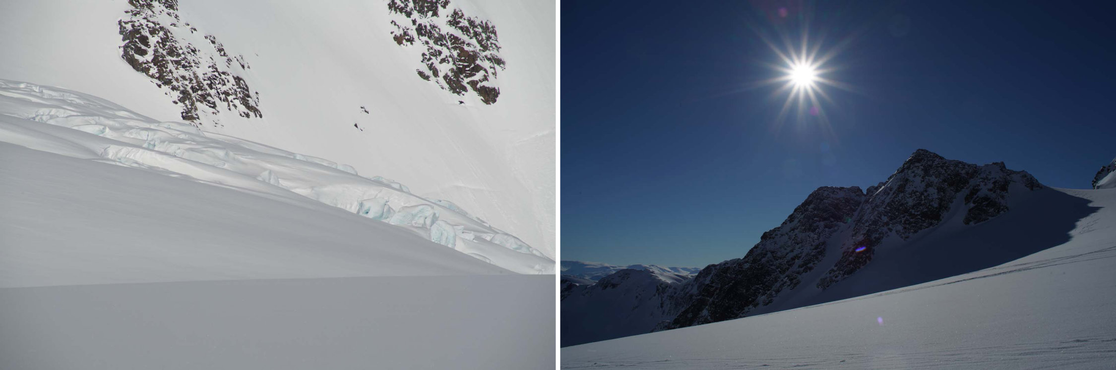 Ganze Route sehr gut eingeschneit inkl. Gletscher und durchgehend mit Skis/Snowboard/Schneeschuhen begeh-/befahrbar. Zurzeit wunderbare Pulverschneebedingungen, unterhalb 250m ü.M. tragender Hartschnee.