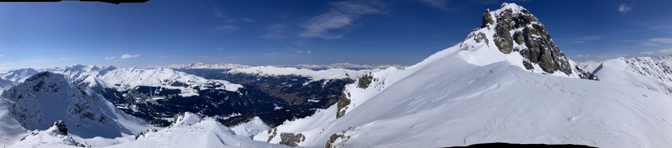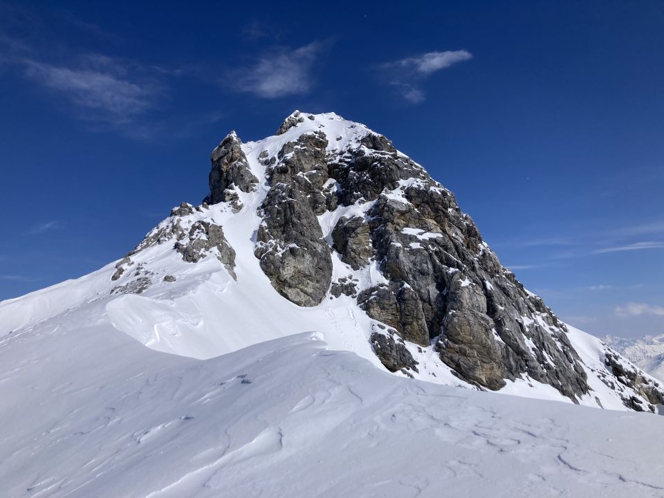 Durchgehend Schnee. Sehr starker Wind. Der leider auch den Schnee bearbeite. Vor dem Gipfel wegen Triebschnee gewendet Abfahrt so lala . Sehr schöne Aussicht Berg.