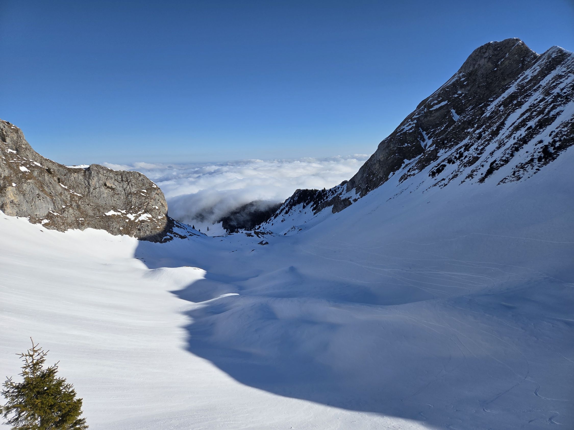Die Abfahrt durch die Nordflanke war mit Pulver sehr schön.