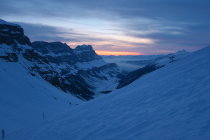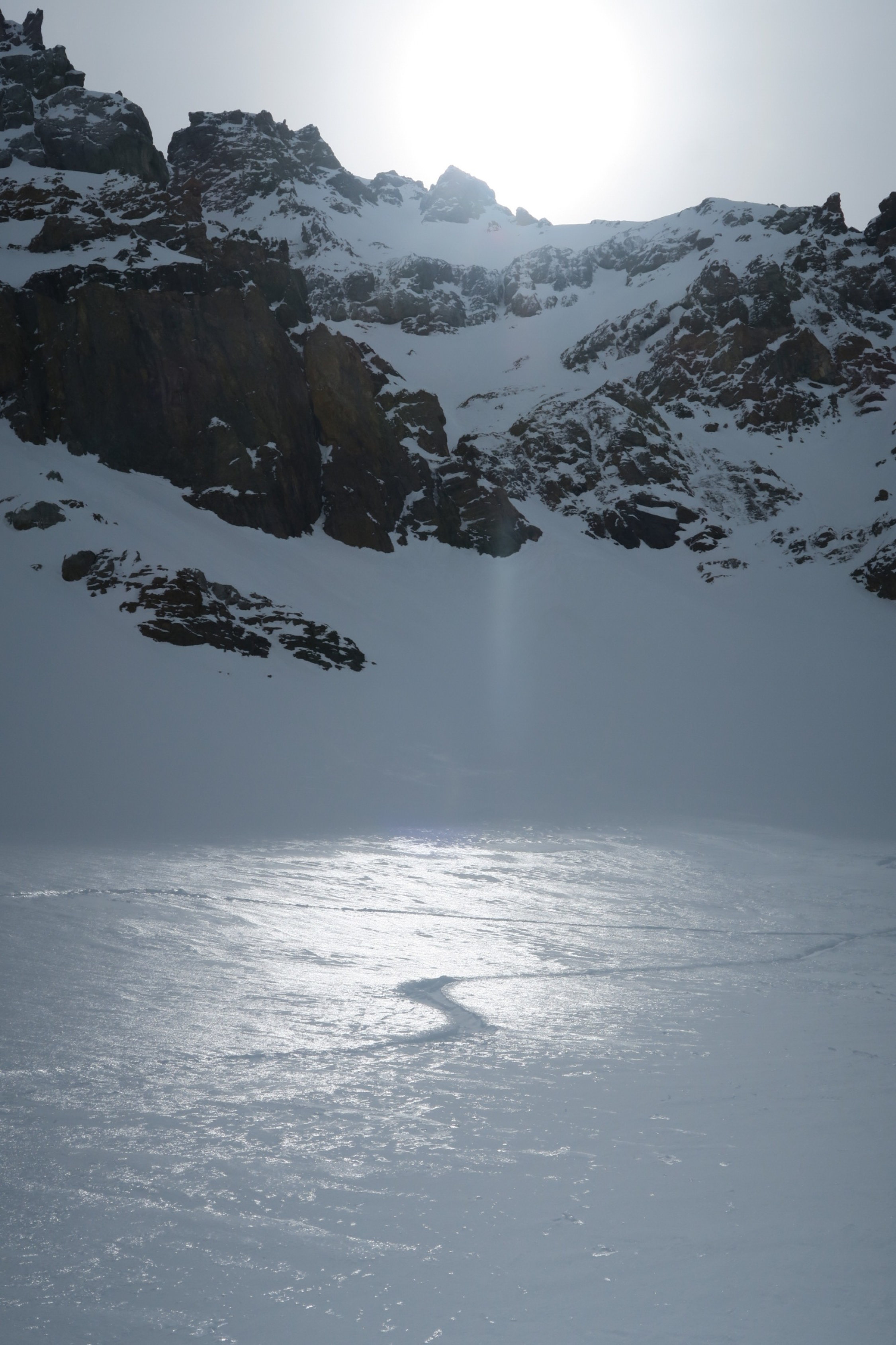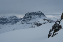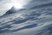 Abfahrt nach Osten einigermassen fahrbar in verblasenem Pulver.
