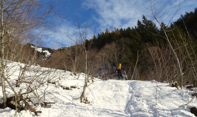 Die Verhältnisse waren recht anstrengend. Nasser Neuschnee im Aufstieg und dann erst recht in der Abfahrt.