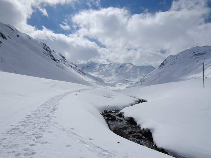 Es müsste schon eine Weile lang kalt werden und schneien, dass wieder eine Abfahrt bis zur Engadiner-Strasse runter möglich ist. Auf Davoser Seite hingegen hat es noch eine Weile Schnee. Im Gebiet Grialetsch-Sarsura hat es längst noch genug Schnee für schöne Frühlingstouren!