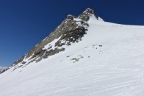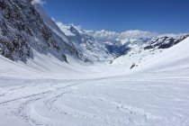 Der Aufstieg über den Grossen Aletschfirn zur Hollandiahütte im schweren Pulver in guter Spur.