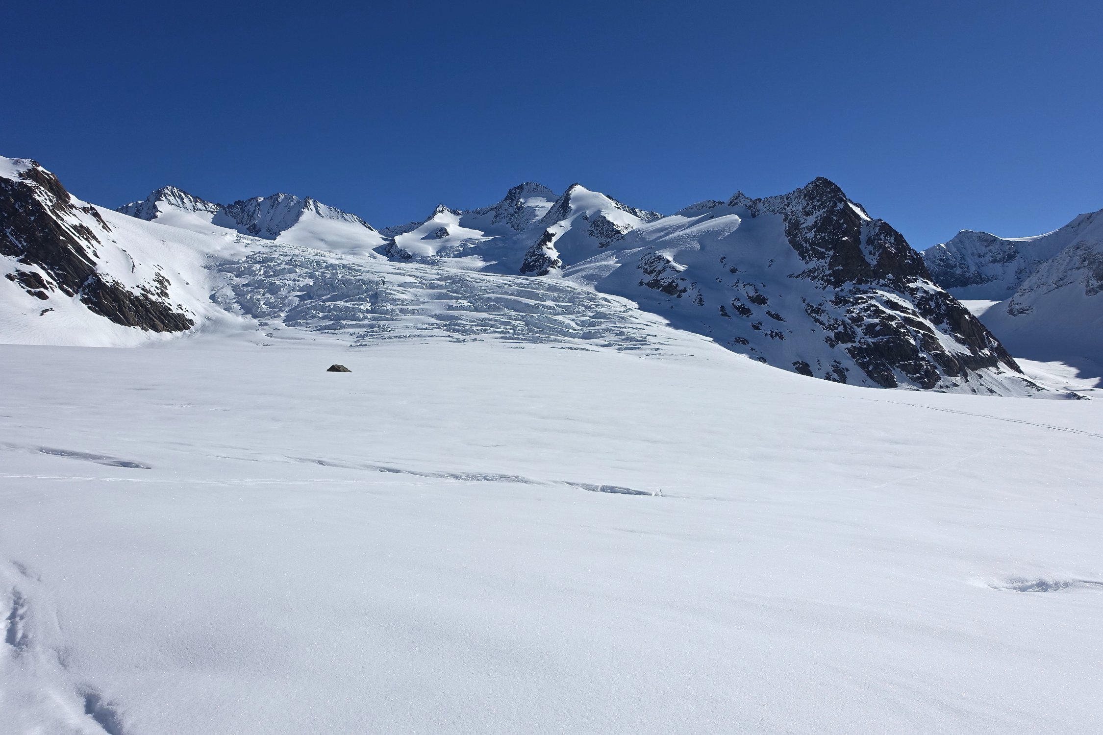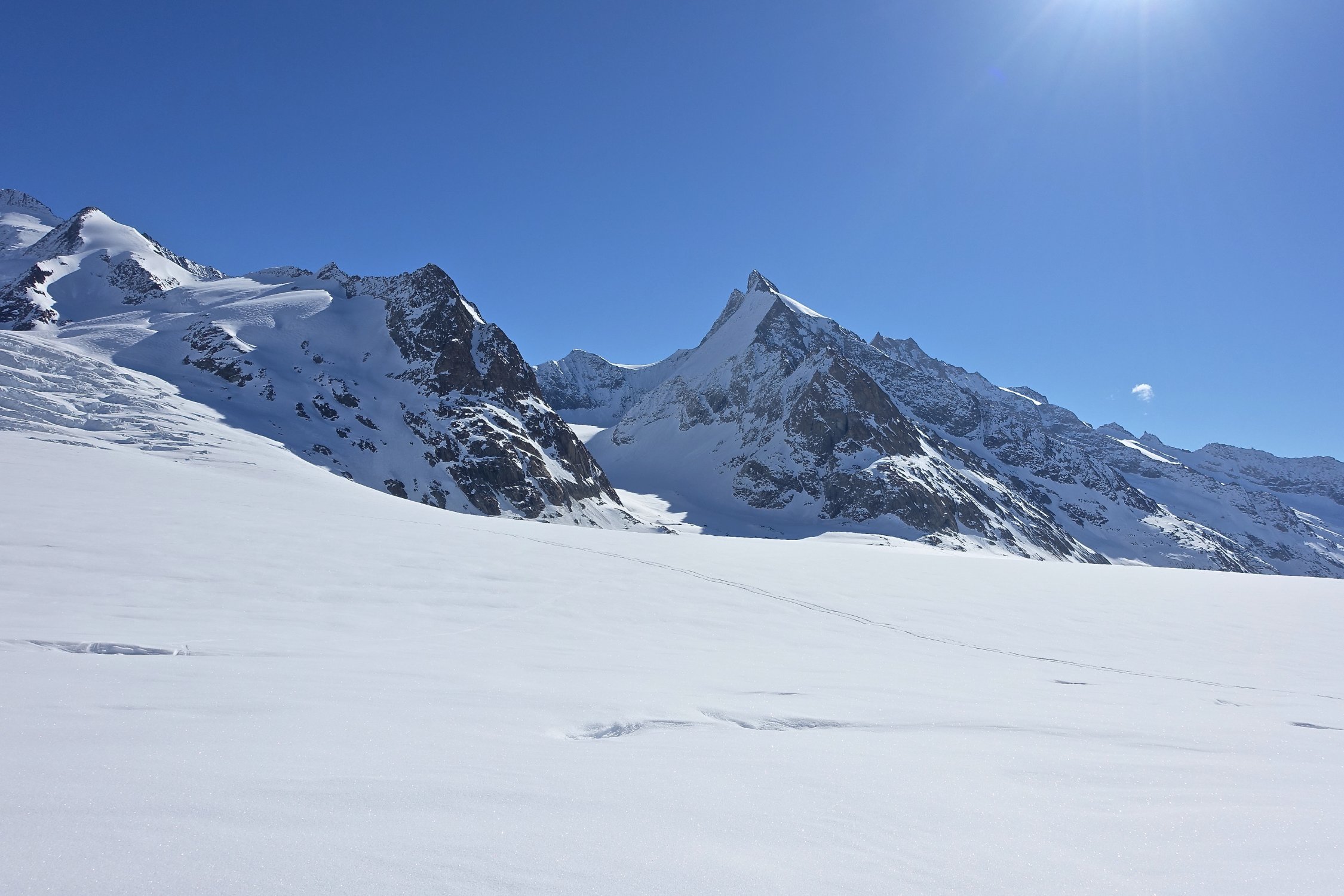 Eines vorneweg: Herrrliches Wetter, angenehme Temperaturen, wenig Wind, viel Schnee und wenig Leute auf der Route! Eine Skitour im einmaligen Weltkulturerbe Gebiet Aletsch.
