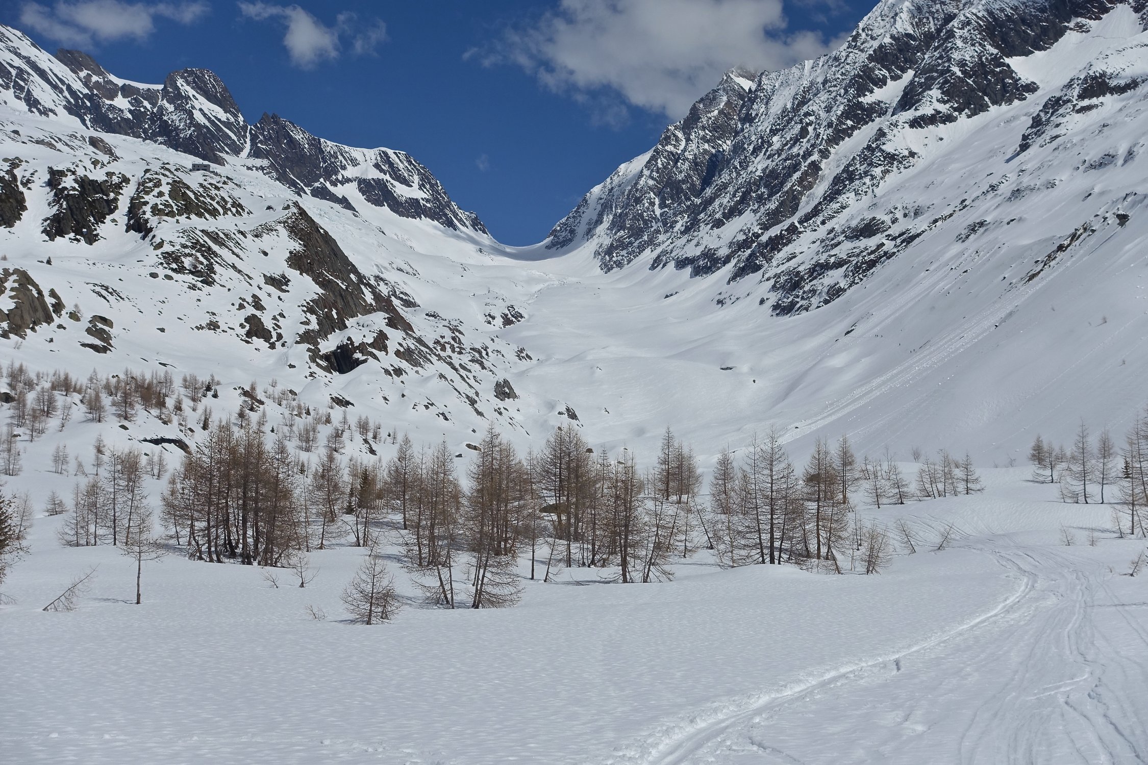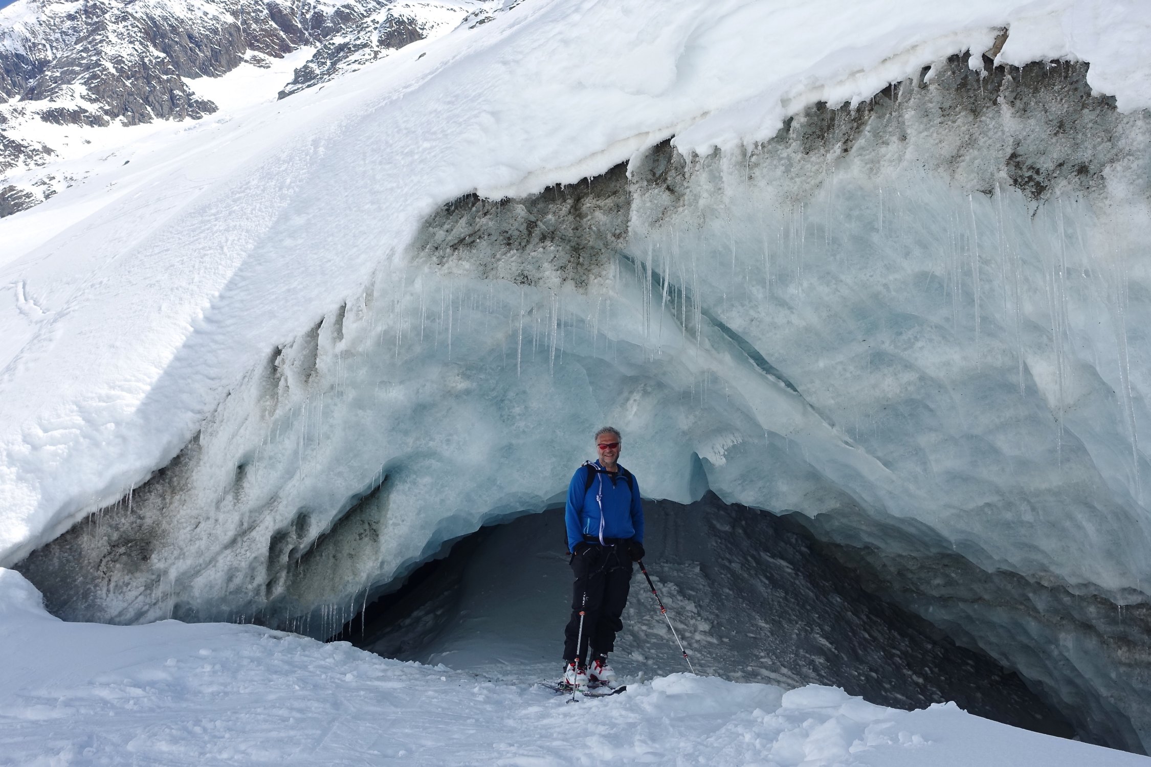 Abfahrt von der Hütte, bzw. Lötschenlücke, ganz passabel, obwohl stellenweise etwas gedeckelt. Unten dann schöner Sulz. Zuletzt zügig auf der Loipe bis Blatten.