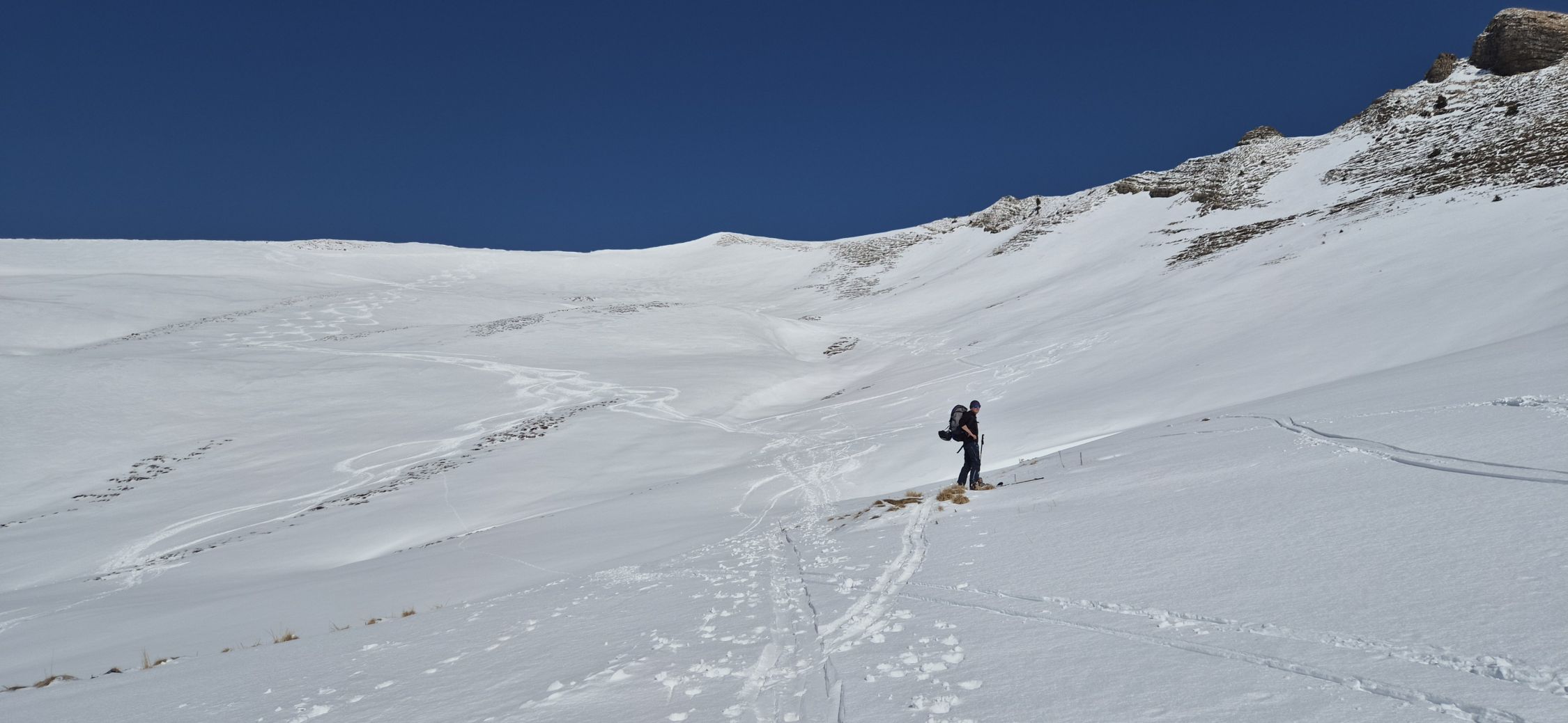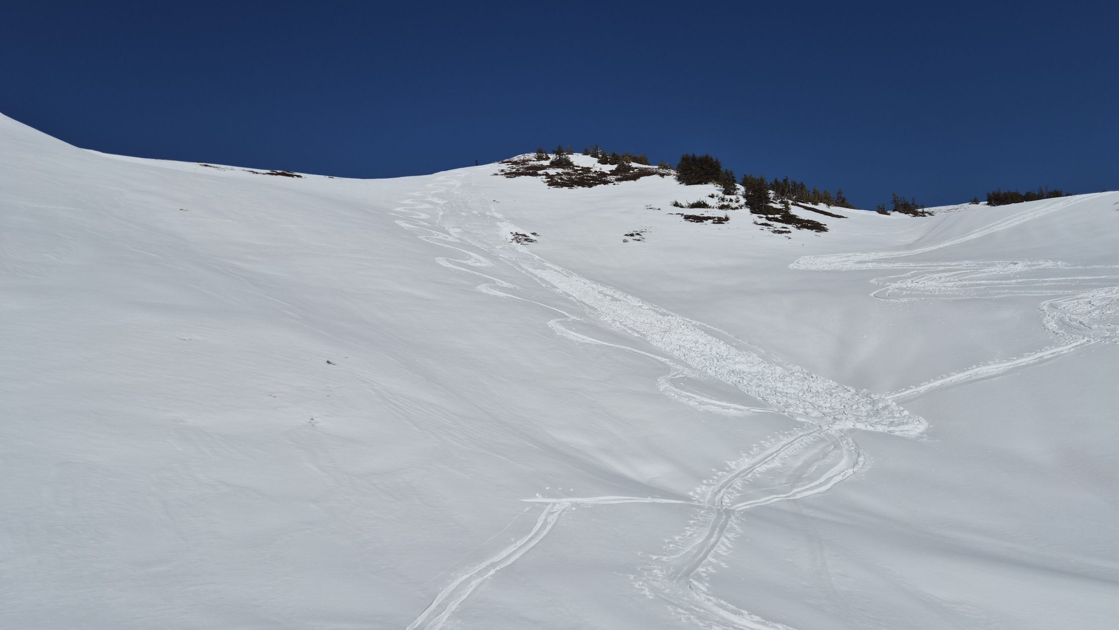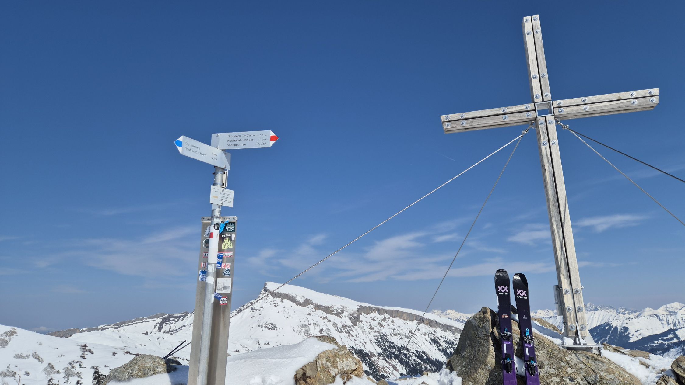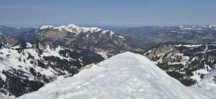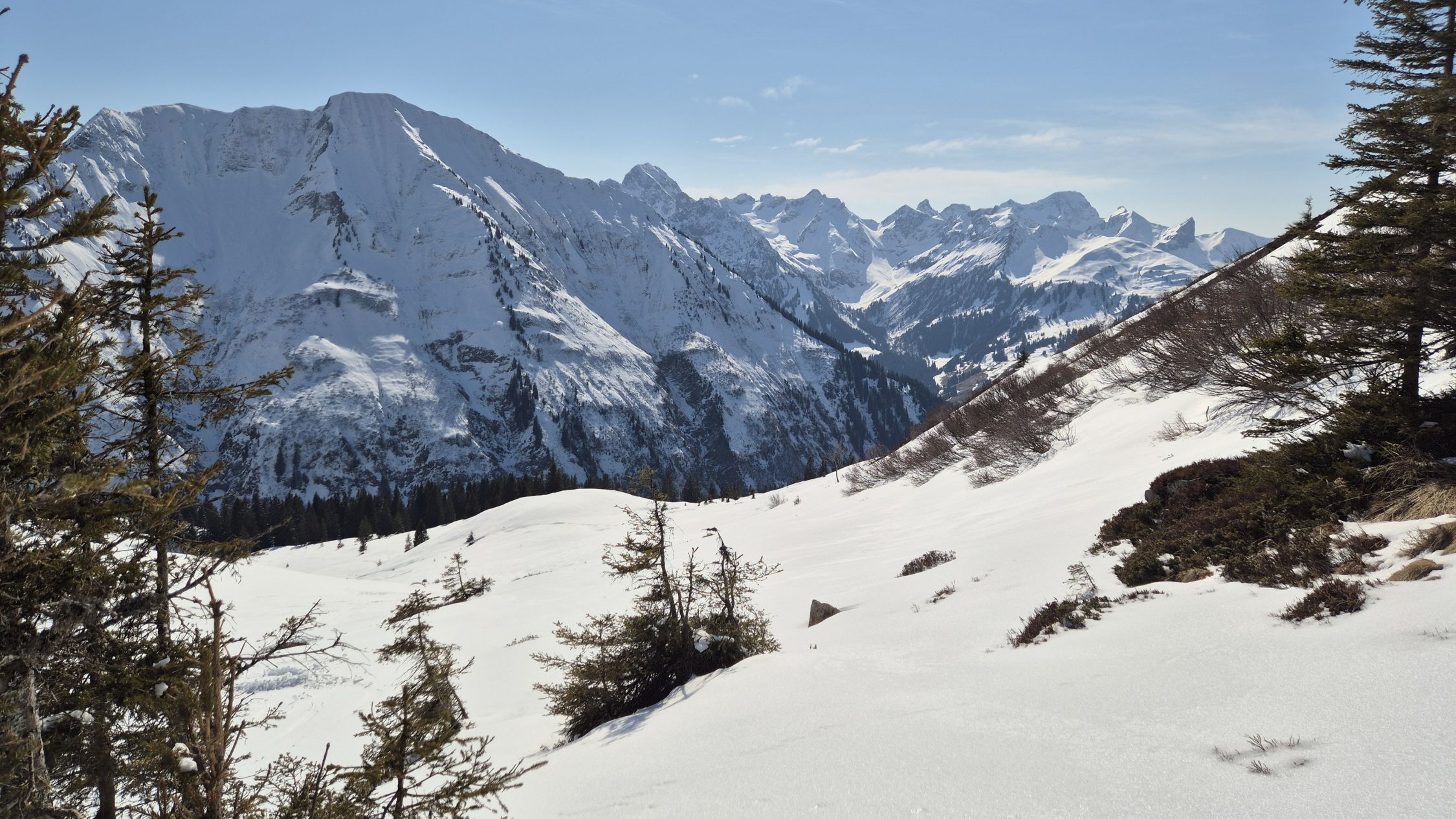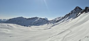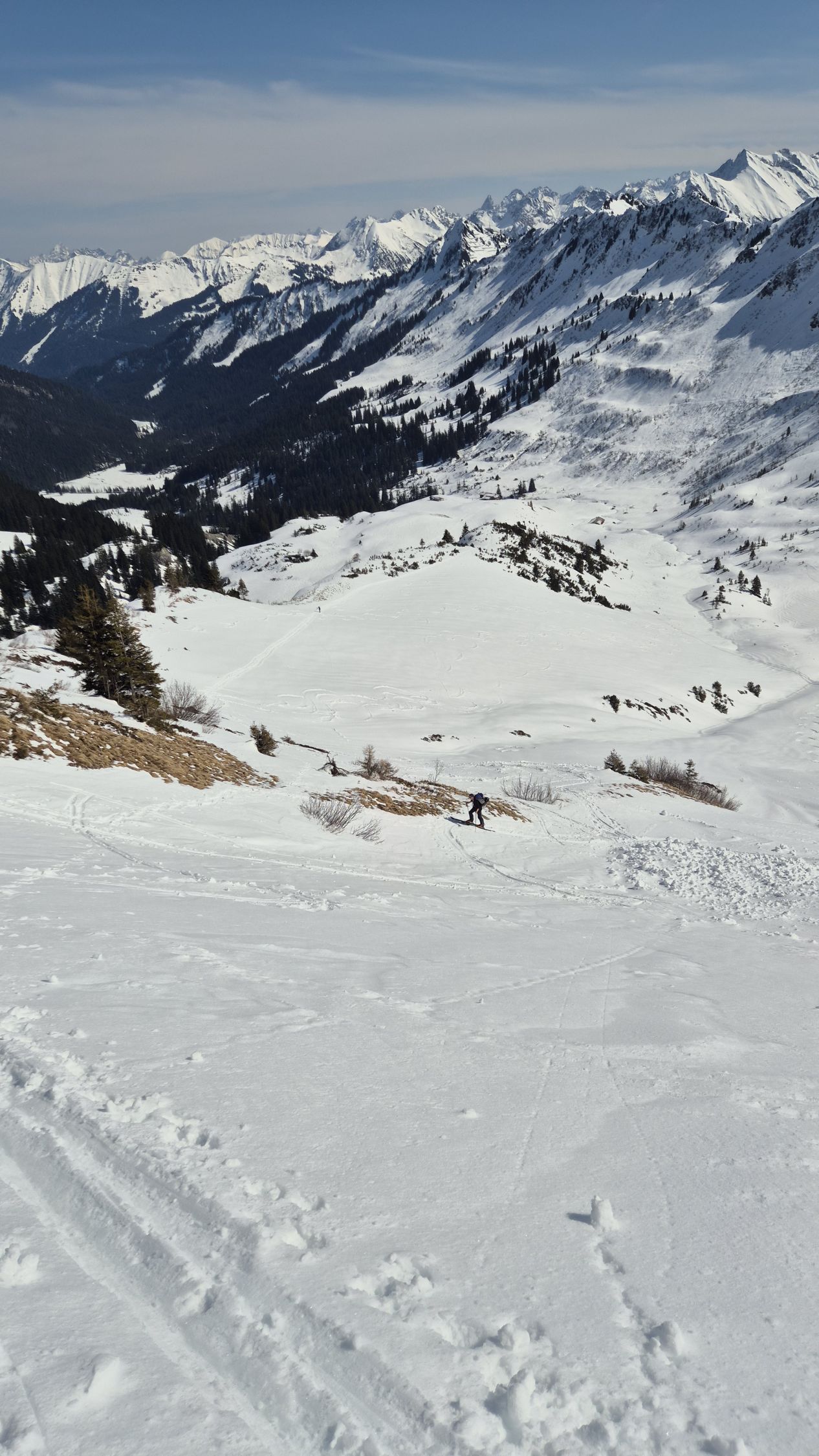 Vom Skigebiet Diedamskopf zunächst auf den Hehlekopf. Top Abfahrt bei Firnähnlichen Verhältnissen in Richtung Schwarzwasserhütte. Aufstieg zum Steinmandl auf guter Spur. Abfahrt nach Süden erst sehr nass, später wieder firnähnlich. Nordseitig machte es einen wechselhaft Eindruck, teils Deckel, teils noch etwas pulvrig.