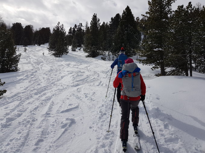 Einwandfreie Verhältnisse. Wir sind durch ein spannendes Couloir Richtung Passstrasse abgefahren. Siehe Karte bei den Fotos
