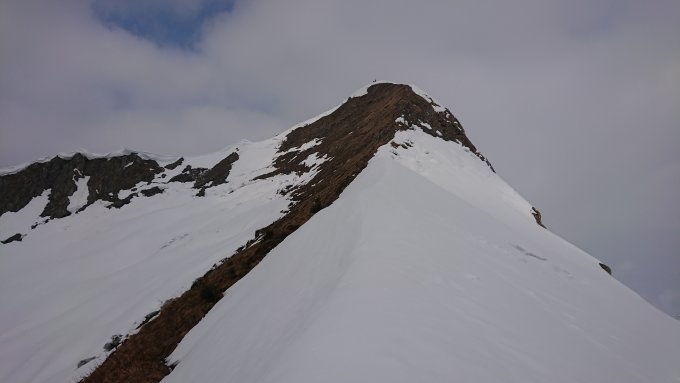 Beim 1. Aufstieg teilweise neblig. Aufstieg am Grat bis auf den letzten Aufschwung zum Gipfel schneefrei.
