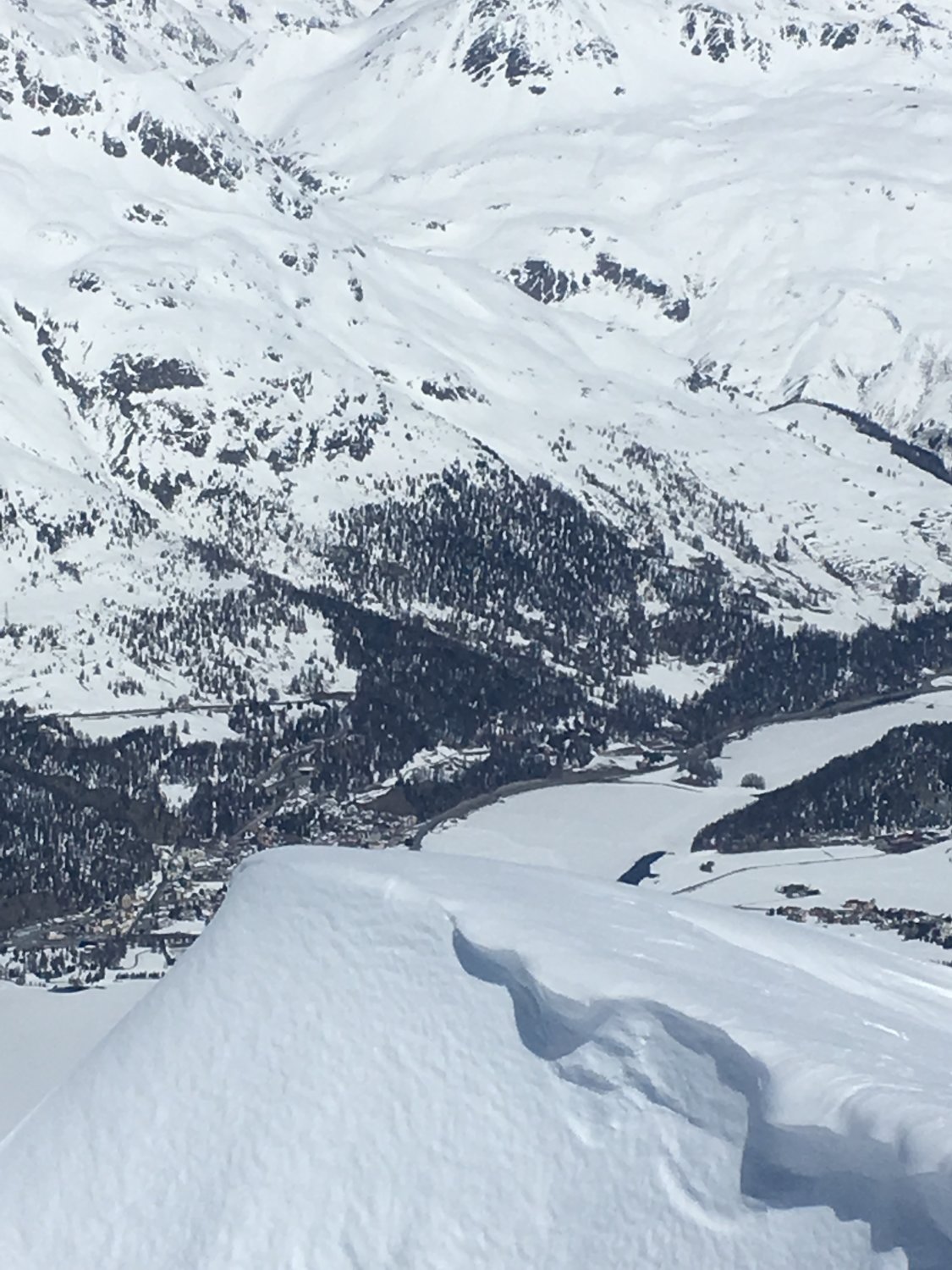 Start um 10.15 Uhr Bergstation Corvatsch, windstill, minus 7 Grad. Tourenbillet 45 CHF. Bis Piz Murtel steile Spur vorhanden. Für Fussaufstieg auch Spur vorhanden von zwei Variantenfahrer, siehe Gipfelfoto Piz Corvatsch. Abfahrt bis Fuorcla Surlej Pulverschnee, Abfahrt zu Bergstation Hahnensee etwas feuchter Pulver. Die Hahnenseeabfahrt ist schon längere Zeit geschlossen, dadurch attraktiver für Abfahrt. Im oberen Teil Bruchharst, nachher schöner weicher Firn. Die grosse Lawine nach dem Waldabschnitt erschwert die Genussabfahrt, aber keine grossen Schwierigkeiten und genügend Schnee bis Bushaltestelle Signalbahn.