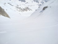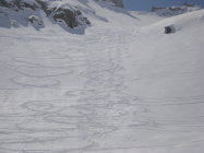 Ich bin heute vom Gipfel nordostwärts die schönen steileren Mulden abgefahren und ohne wiederanfellen zum Chräiennest hinübertraversiert(nur bei sicheren Verhältnissen machen). Bis da noch etwas pulvrig mit einem leichten Deckel obendrauf. Mit etwas Druck auf die Ski, lies sich alles sehr gut fahren. Am Chräiennest kurz Firn, danach schöner Sulz bis zum Tiefenbach.