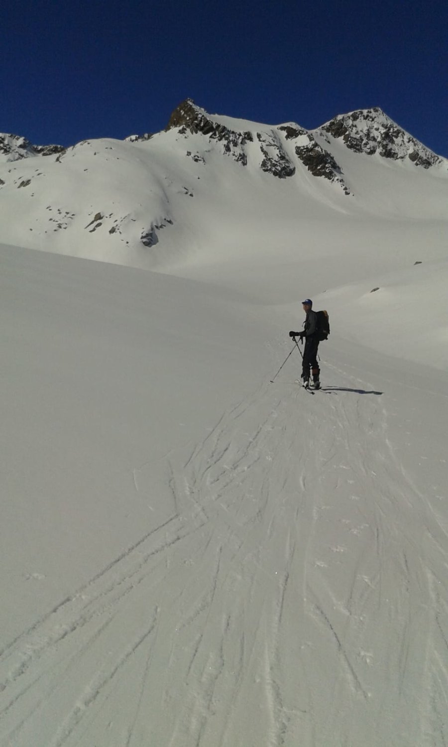 Die Abfahrt war ok, jedoch die Schneeverhältnisse nicht ideal, etwas Plattenpulver, bzw Deckel, unten schwerer Sulz.