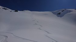Start um 13:00. Firn von unten bis oben, Pulver/Firn, je nach Expo, runter
