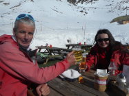 Wetter: Perfekte Skitouren-Verhältnisse, und ausgezeichnete Fernsicht. Manchmal windstill, und ab und zu Windboen mit 40 Km/h. Ich liebe den Wind. C`est fantastique.