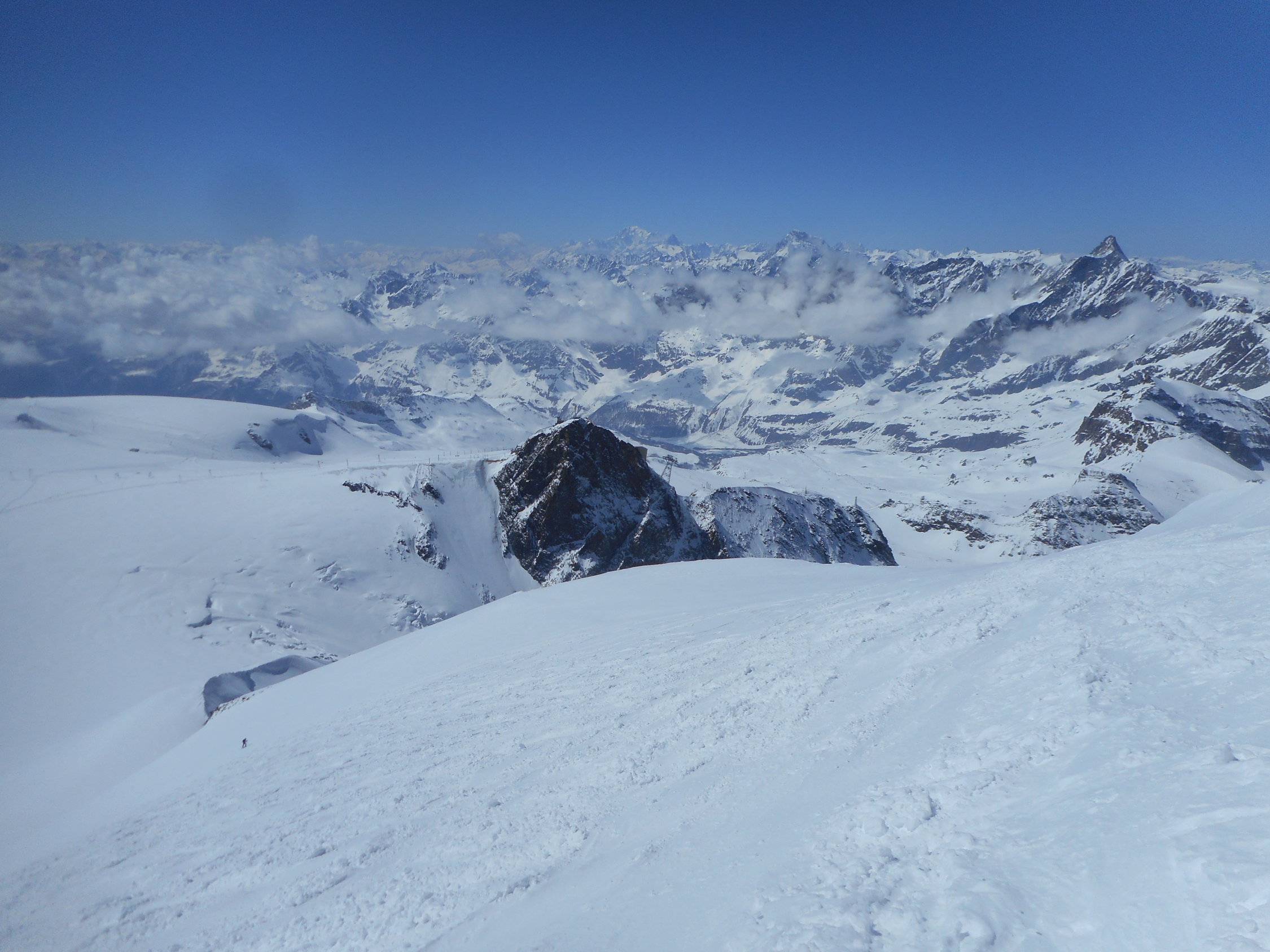 Folgende Touren wurden auch gemacht, und man hat Spuren gesehen: Dufourspitze, Nordend, Signalkuppe, Schwärze-, Theodul-, Gorner- und Grenzgletscher, Castor bis zum Gipfelgrat, Pollux, Alphubeljoch, Adlerpass, Strahlhorn. Die Verhältnisse zum Skitouren in der Königskrone sind ausgezeichnet.