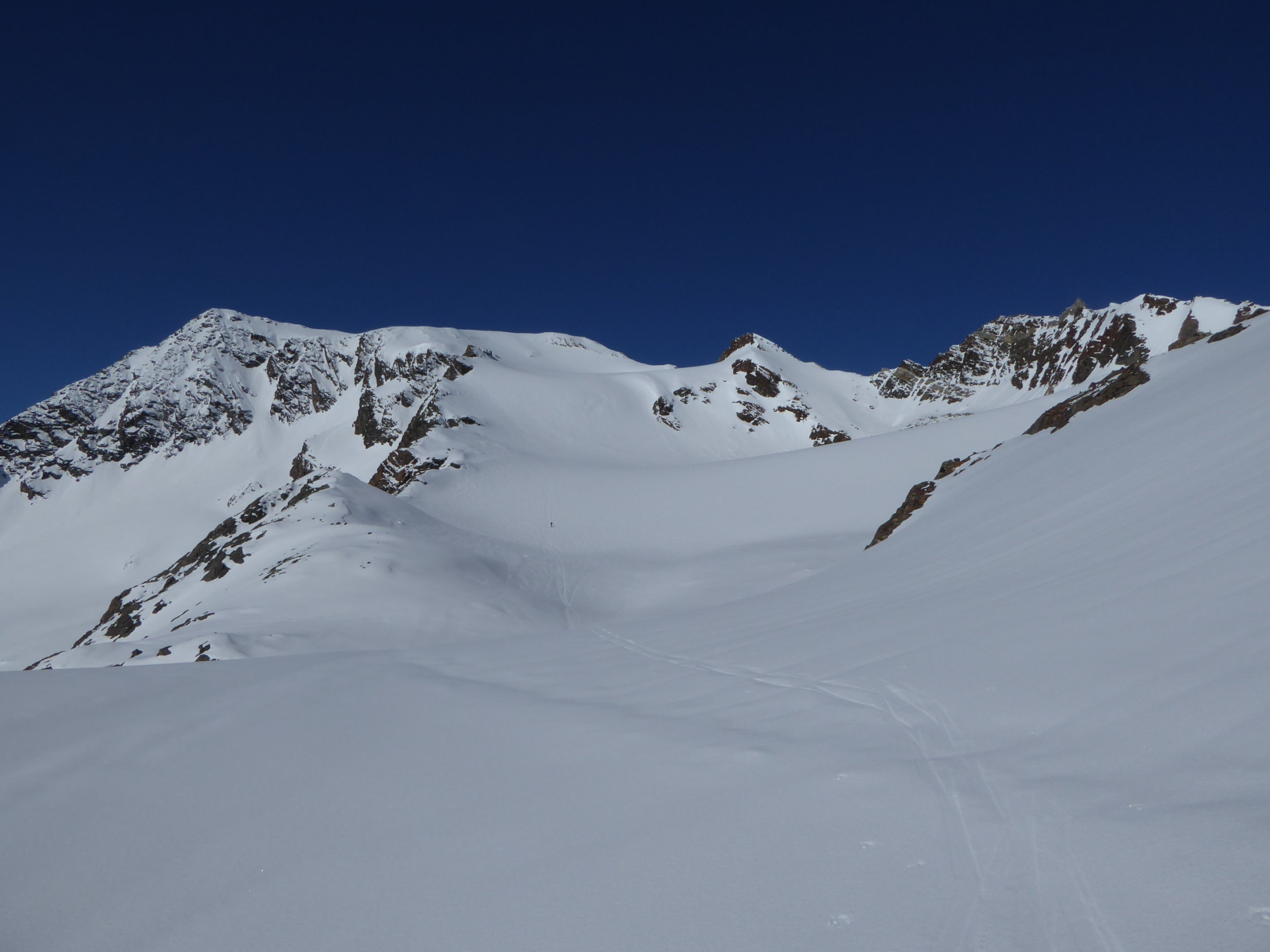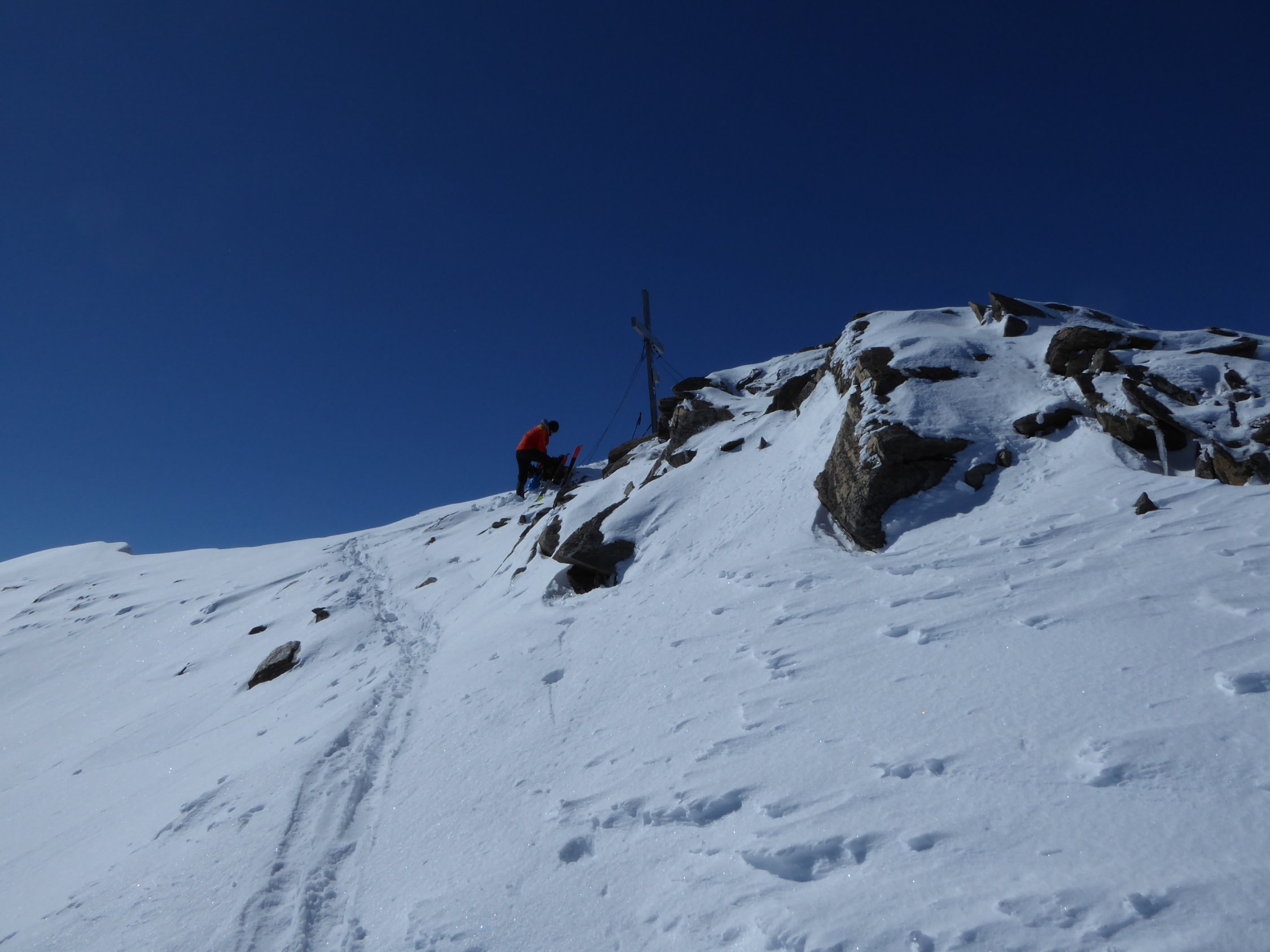 Bei Abfahrt im Gipfel- und Steilhang Pulver, Mittelteil ganz kurz mit Deckel und nach unten raus perfekter Firn bis zur Hütte. Ab der Hütte gut drehender Nassschnee.