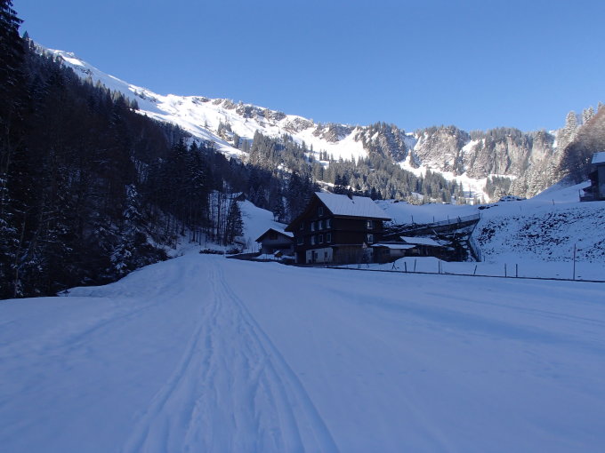 In der Weglosen ca. 5cm Neuschnee, oberhalb Druesberghütte ca. 10-15cm Neuschnee.