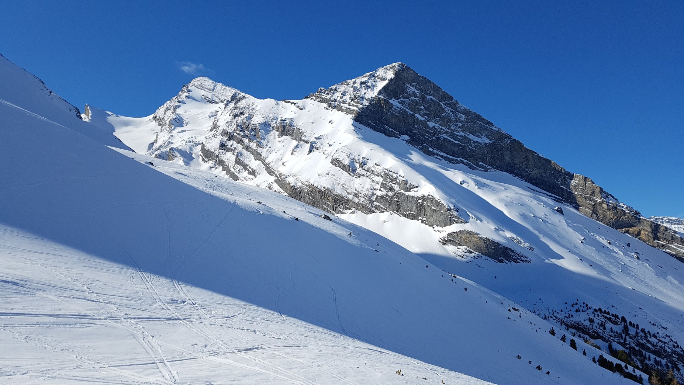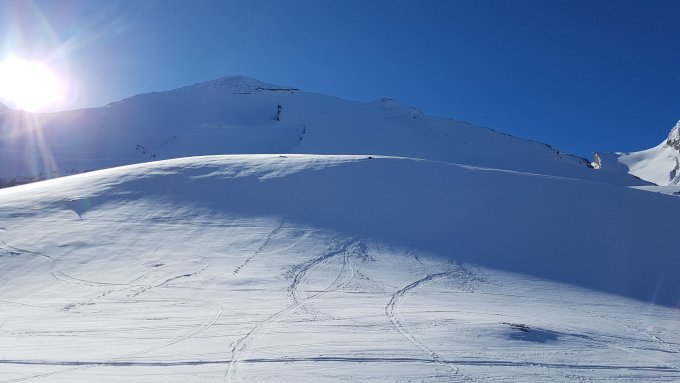 Im obersten Teil liegt herrlicher Pulverschnee, weiter unten - wie beschrieben - eisig und rutschig. Viele Steine sind nicht gut zugeschneit. Ab Unterem Tatelishorn wieder problemlos.