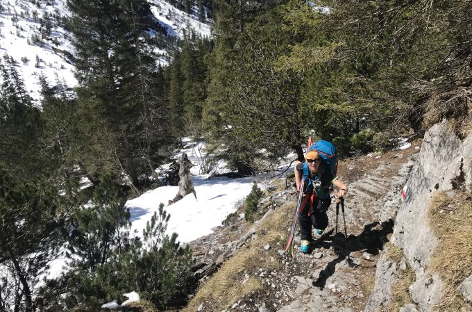 Unterhalb des Biwak wird's es vor allem im Waldbereich langsam aber sicher kritisch mit dem Schnee. In den nächsten Tagen wird unten Ski tragen angesagt........