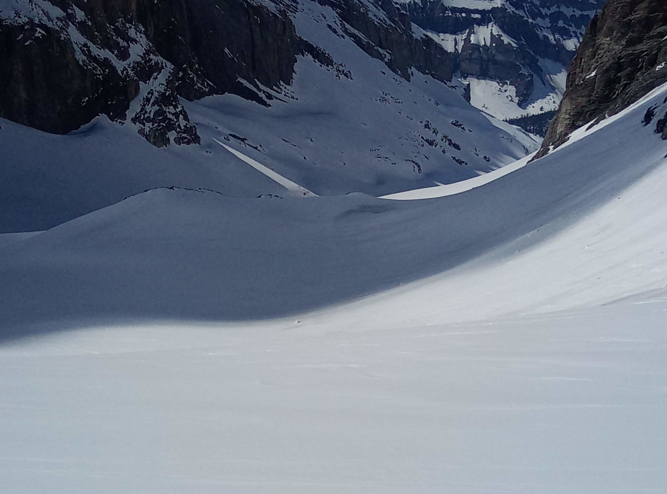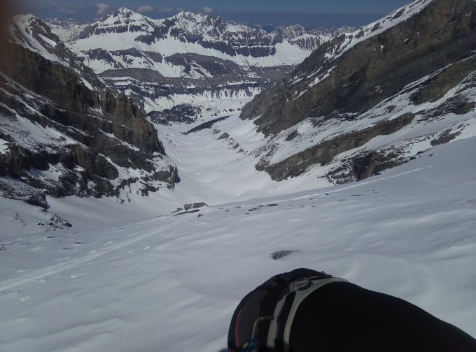 Das gut bezieht sich auf die ganze Route ausser dem Gipfelhang, dieser ist zur Zeit eigentlich blank und nur mit einer sehr schwachen Neuschneeschicht zum Teil bedeckt. Wir haben die Steigeisen montiert und die Skis aufgebunden. Abfahrt dann durch den etwas steileren Teil der Westflanke unter den Felsen die vom Verbindungsgrat der Altels runterziehen. Dort gute Abfahrtsbedingungen. Wir haben am Vorgipfel die Tour beendet, weil wir mit dem ÖV unterwegs gewesen sind und die letzte Bahn um 17 10 Uhr auf dem Sunnbühl erwischen wollten, darum war 15Uhr unsere letzte mögliche Gipfelzeit. Heute in der Abfahrt noch ganz tolle Bedingungen auch wenn wir sehr spät abgefahren sind, war der Sulz bis ganz unten jederzeit noch super zu fahren.