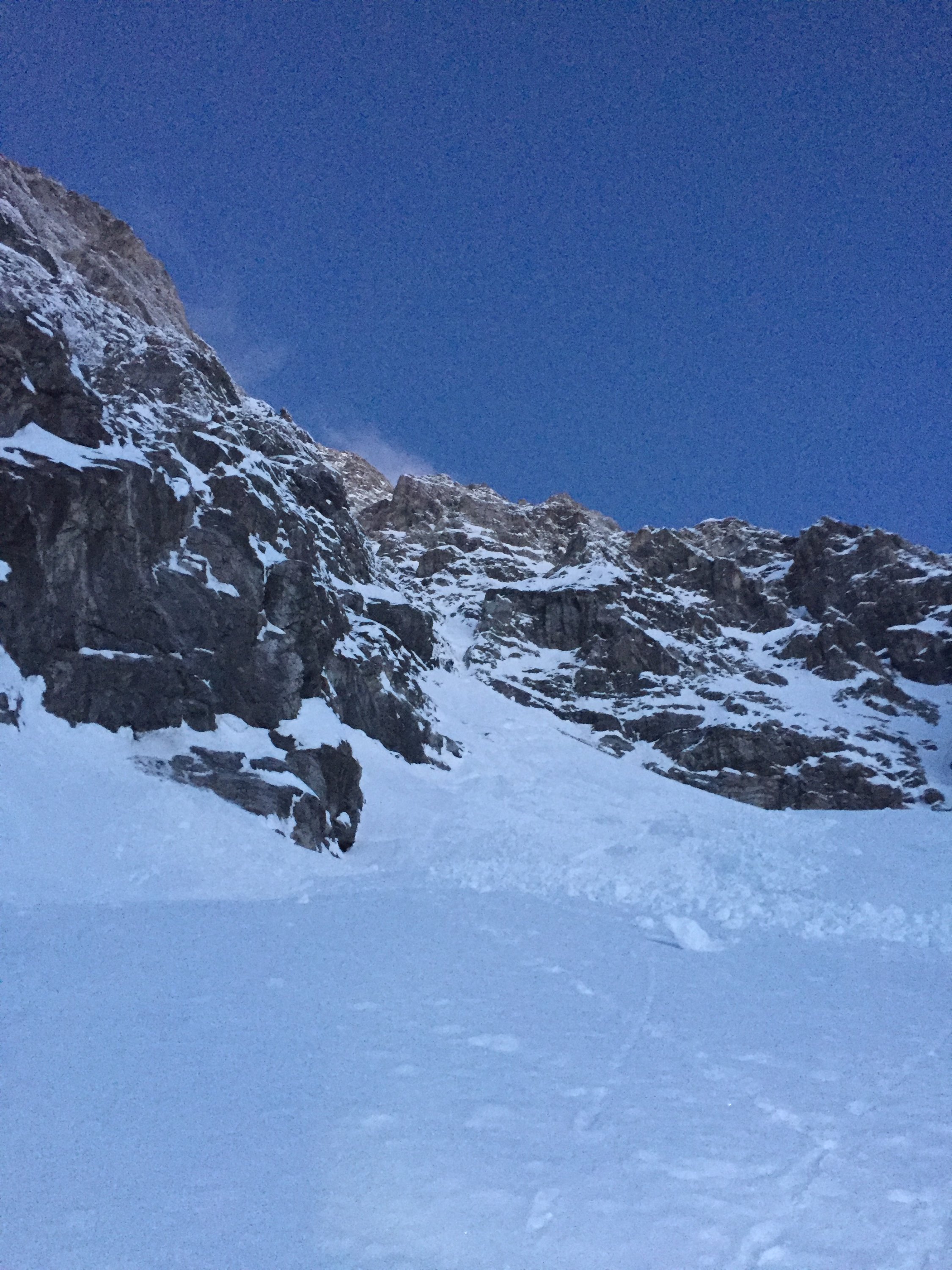Wenig Schnee in der Rinne, Schnee unten noch einigermaßen hart, ab der hälfte dann sehr weich. Martlgrat blank. Wir sind dann nach Tafroi abgefahren.