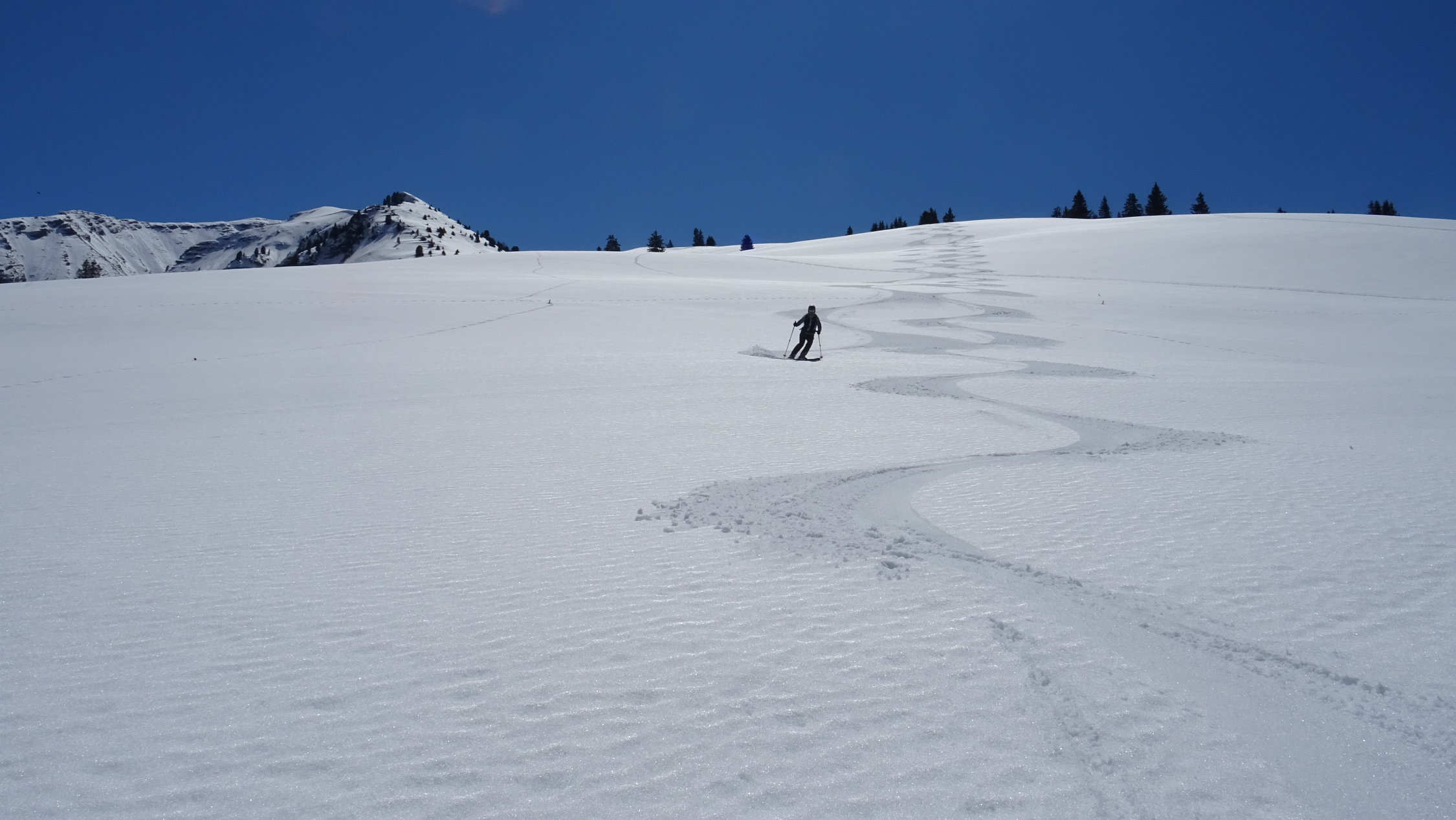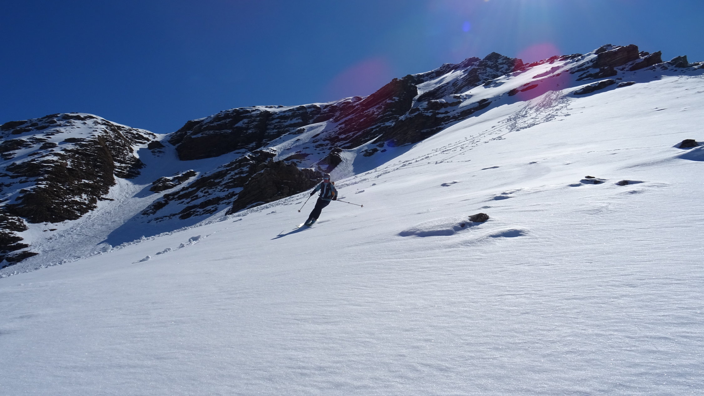 Die Abfahrt war dann durch den Nordhang ganz oben ein gemisch aus Pulver und Hart aber danach nur noch beste Sulzverhältnisse