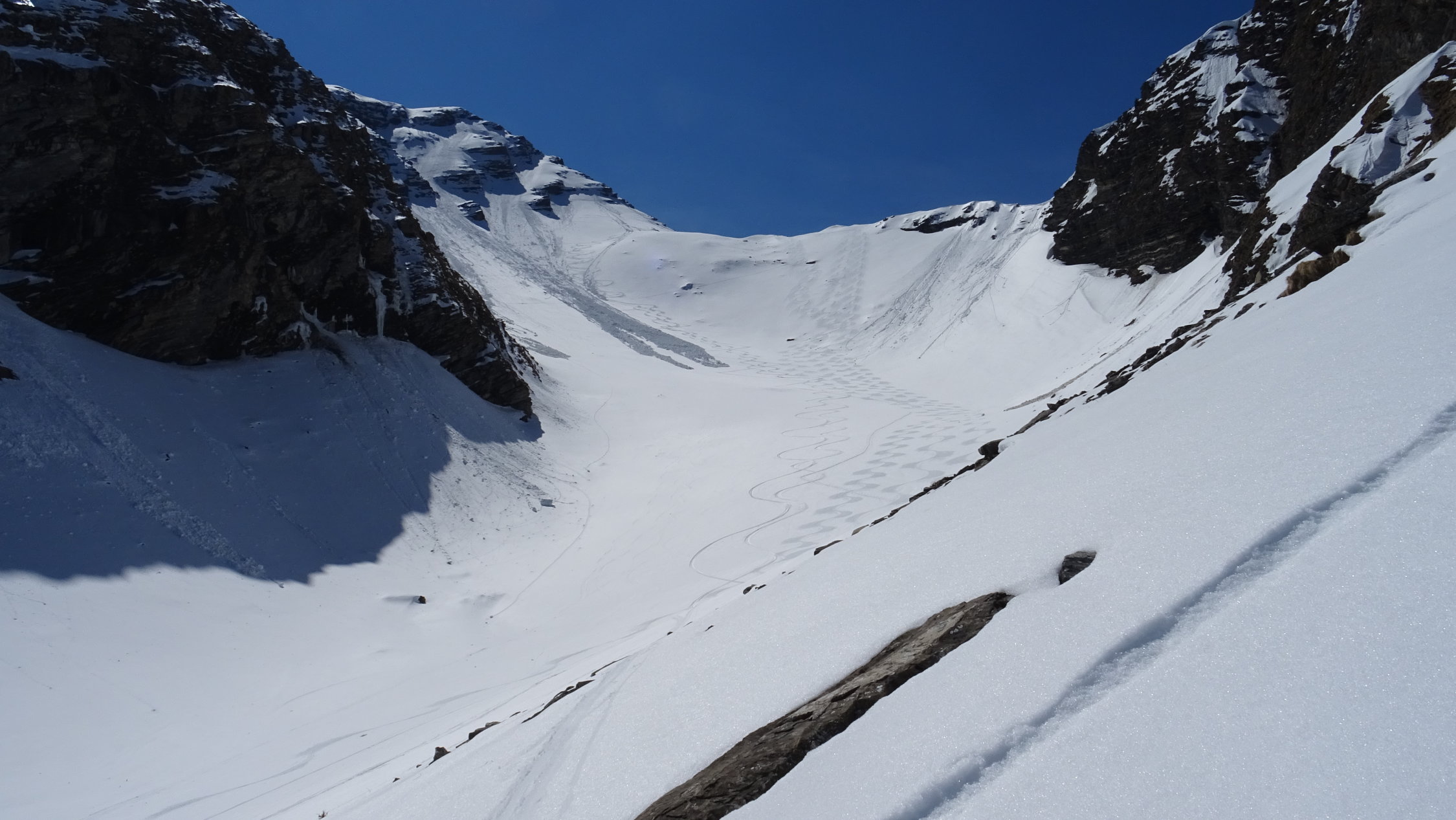 Wir sind heute Nordseitig durch das Berzgummloch aufgestiegen was sich aber wegen eines Lawinenkegel im Couli als sehr erschwerliche variante zeigte