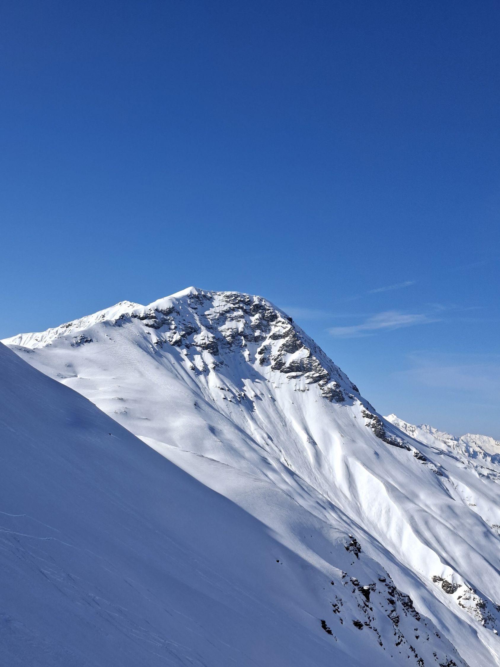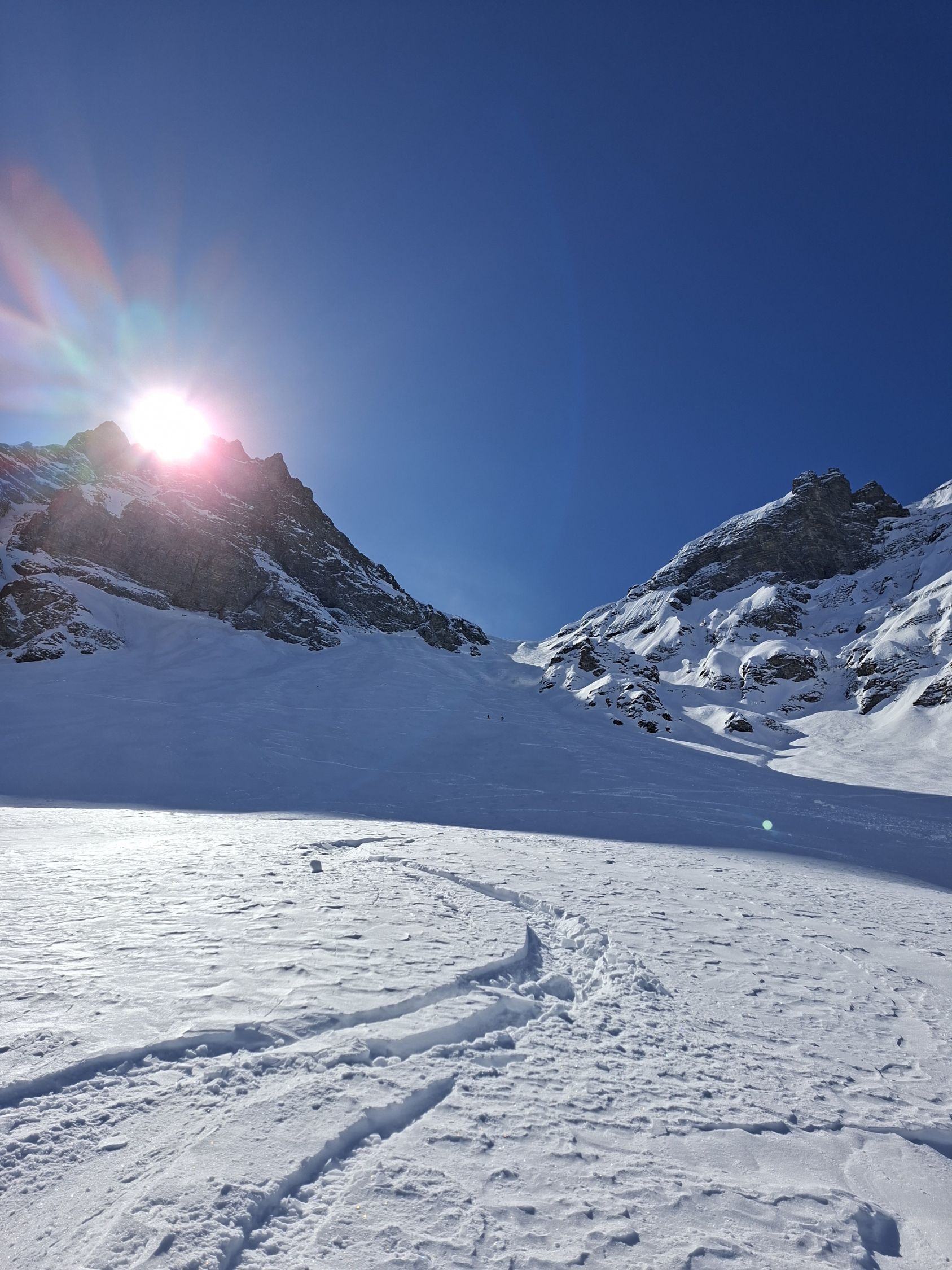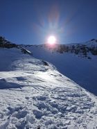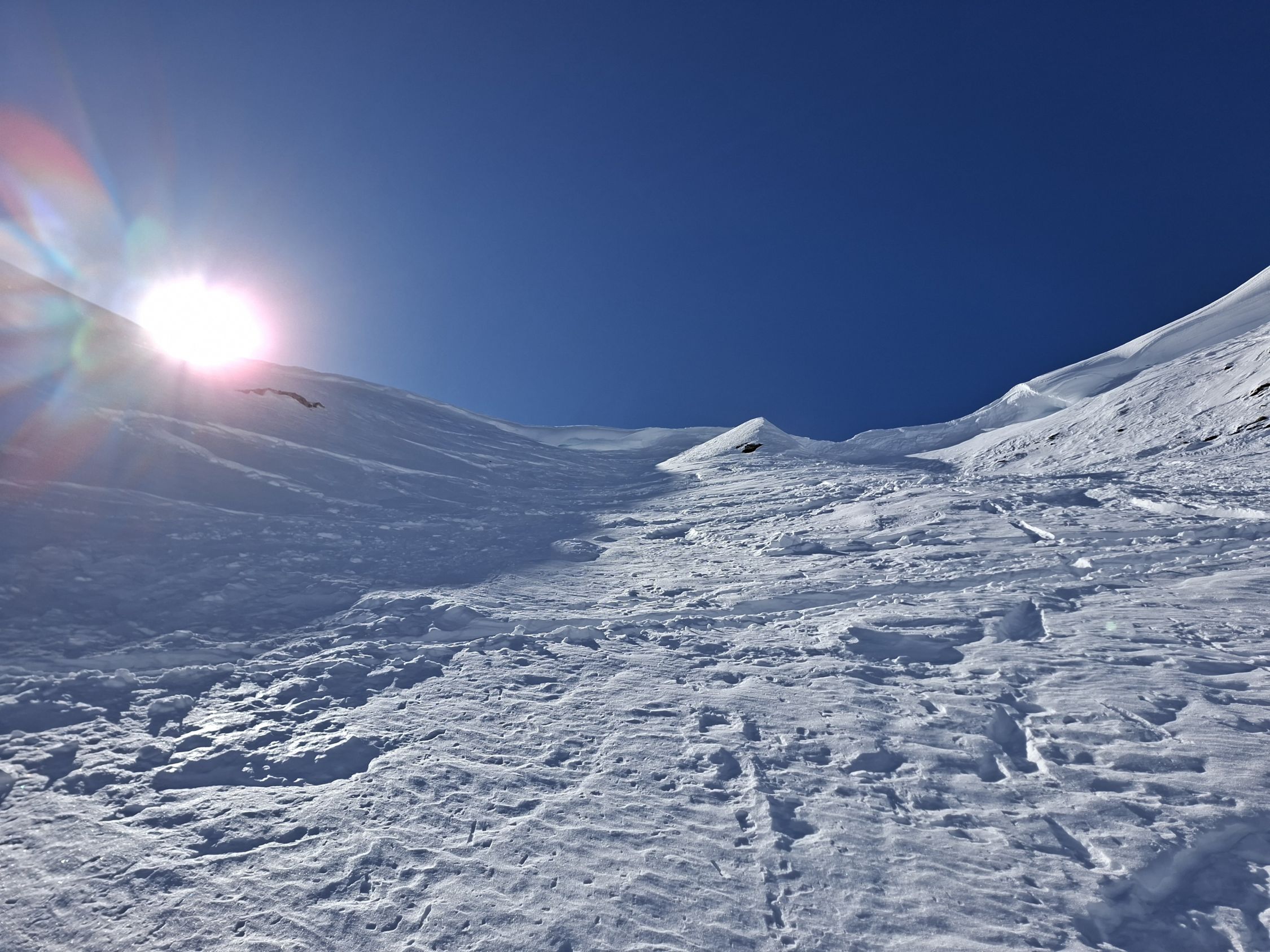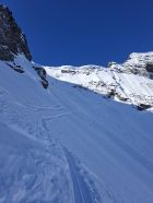 Aufstieg: Die Spur durch den Steilhang war OK ?. Ausnahme: die letzten 15 Hm bis zum Sattel (2359 m) geht man am besten zu Fuss.