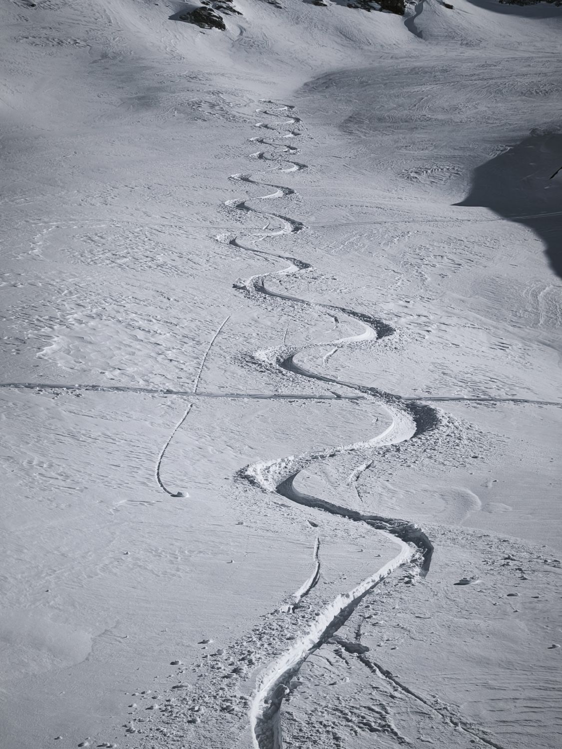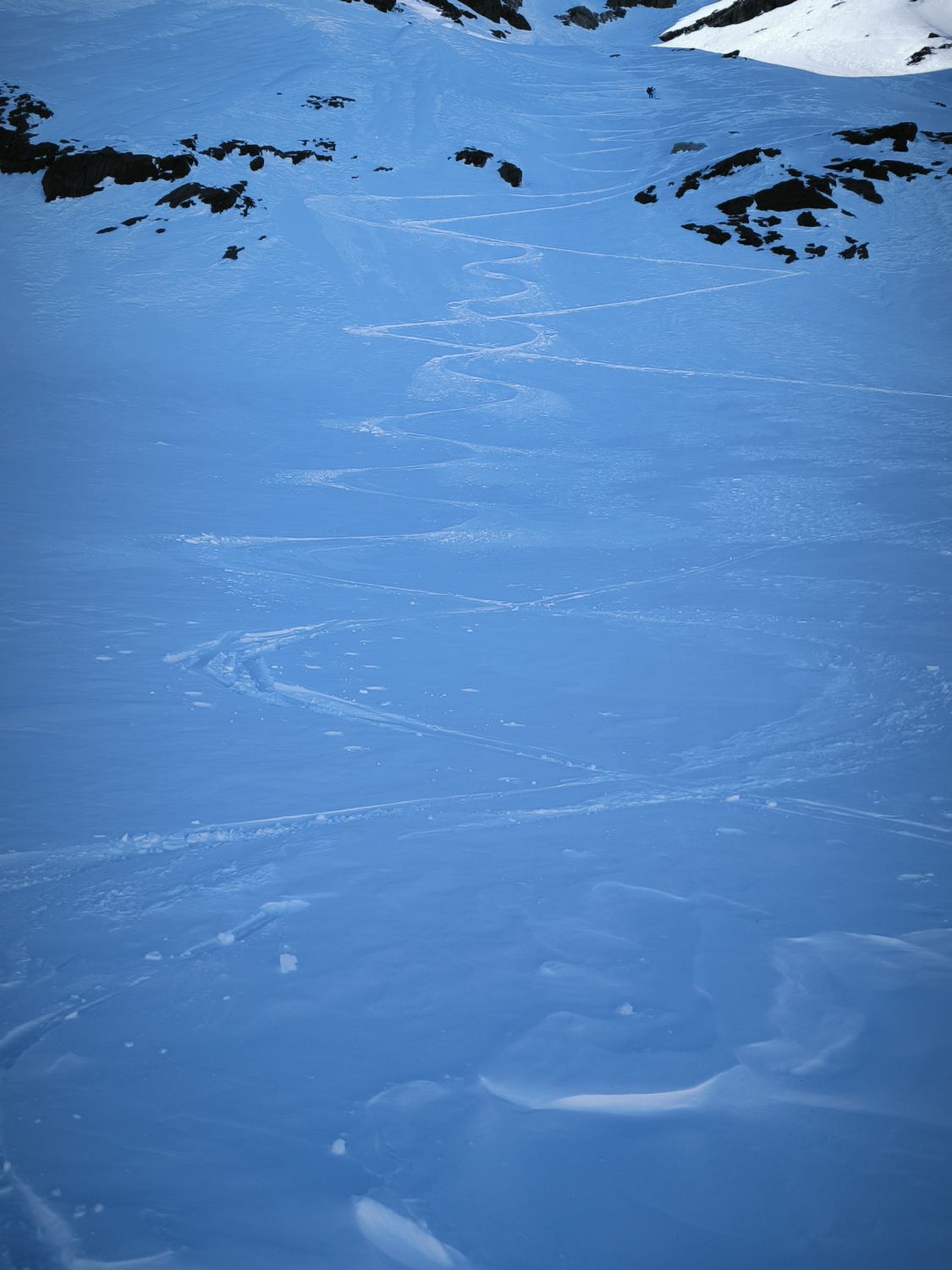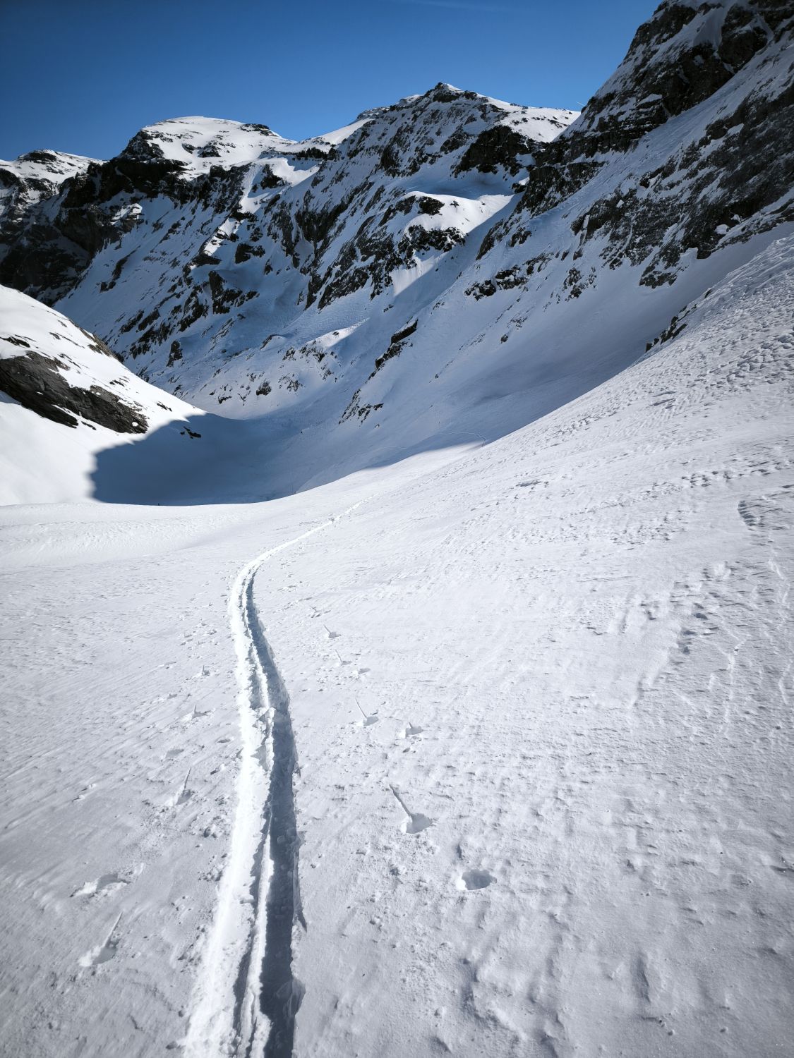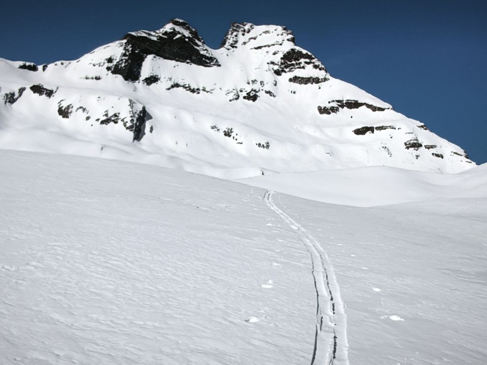 Dem netten Glarner aus Schwanden, der bis zum ersten Gipfel dem Ruch Wichlemberg vorgespurt hat ein ganz lieber Dank für die Stärkung, die du am Auto hinterlassen hast. Das Vorspuren bis zum Hausstock war noch anstrengend. Ich war letztendlich heute alleine oben. Alle Sorten vom Schnee gehabt. Der größte Teil war sehr gut zu fahren. Nur die letzten Meter im Tal (späte Abfahrt) waren übler Bruchharsch. Ach ja für die Stärkung der Paranoia und des Narratives: die Russen waren auch schon mal da mit Ross und Reiter zumindest bis auf 2400m