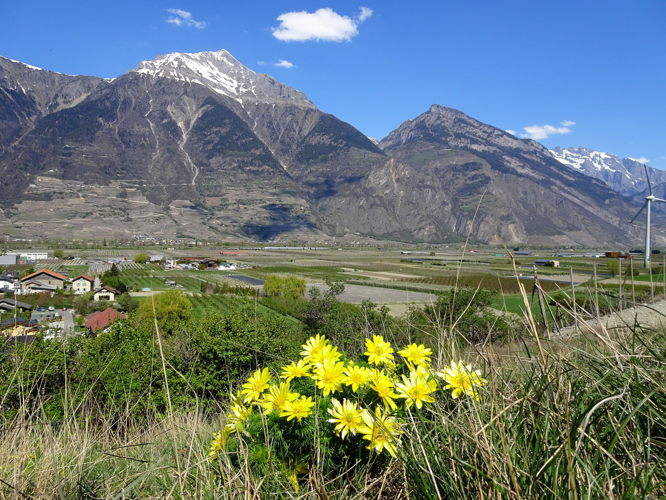 Charrat- Saxon hingegen, ist eine Wanderung die die Adonisröschen als Hauptmerkmal hat. Dazu schöne Weinberge und ebenso schöne Aussicht.